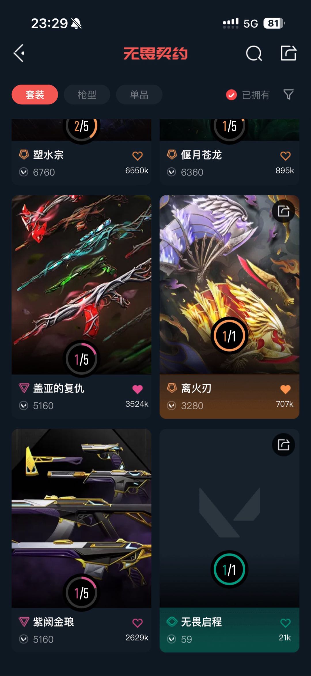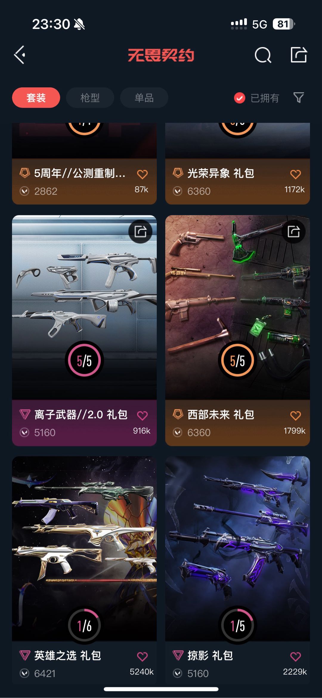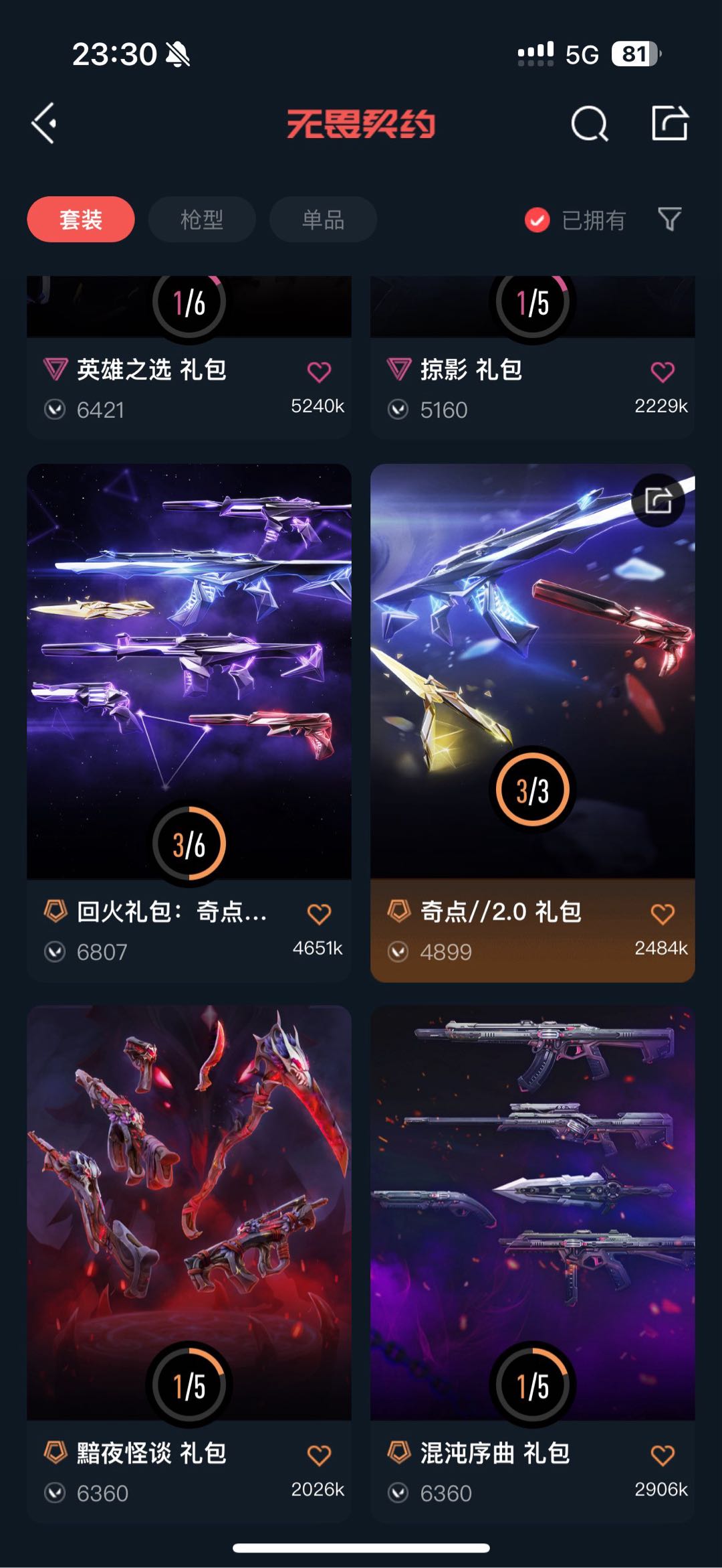 可排❤禁炸鱼❤6.6W库❤奇点2.0套❤光荣异象套❤西部未来套❤离子2.0套❤离火刃❤显卡爪刀❤