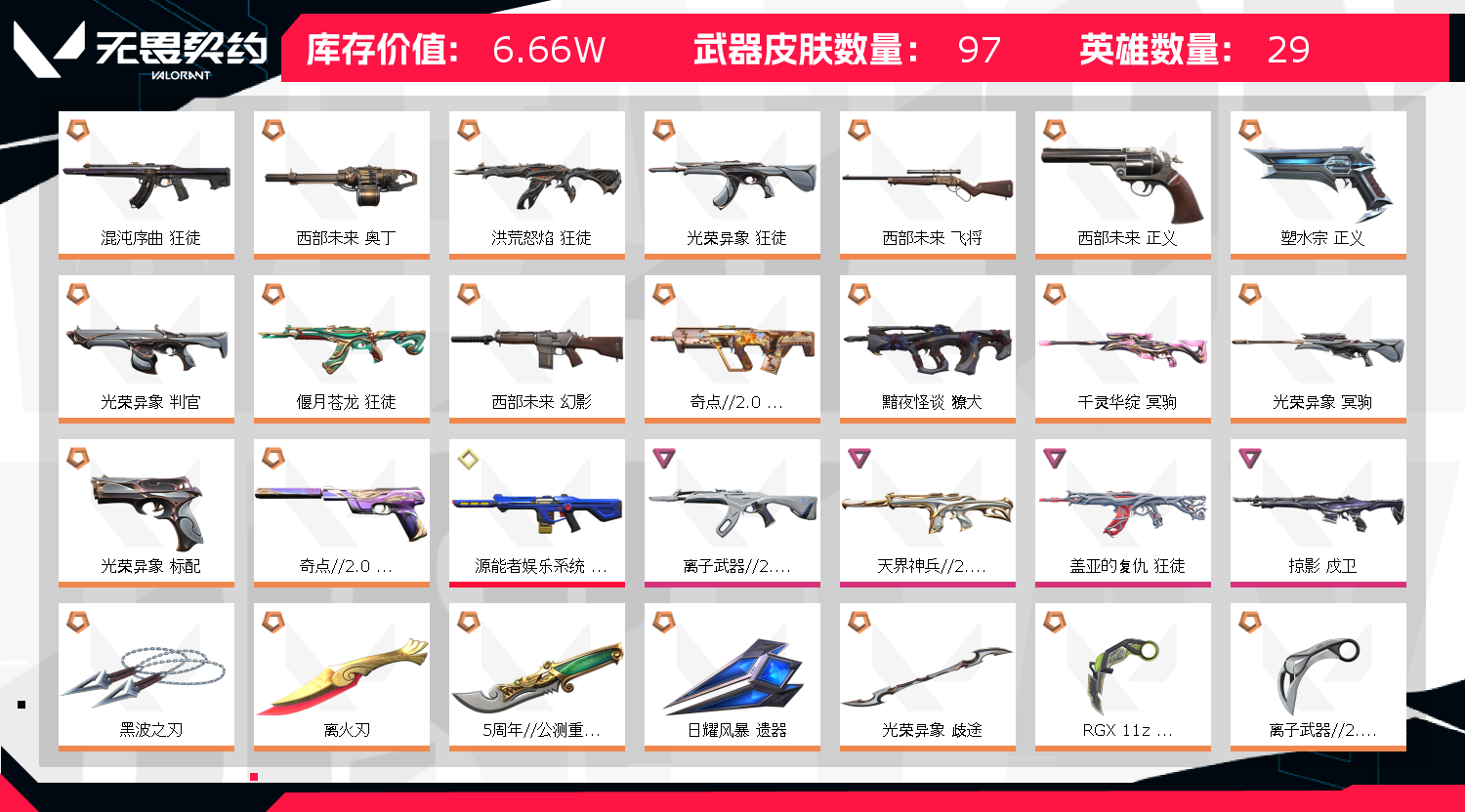 • 皮肤资产价值: 66625