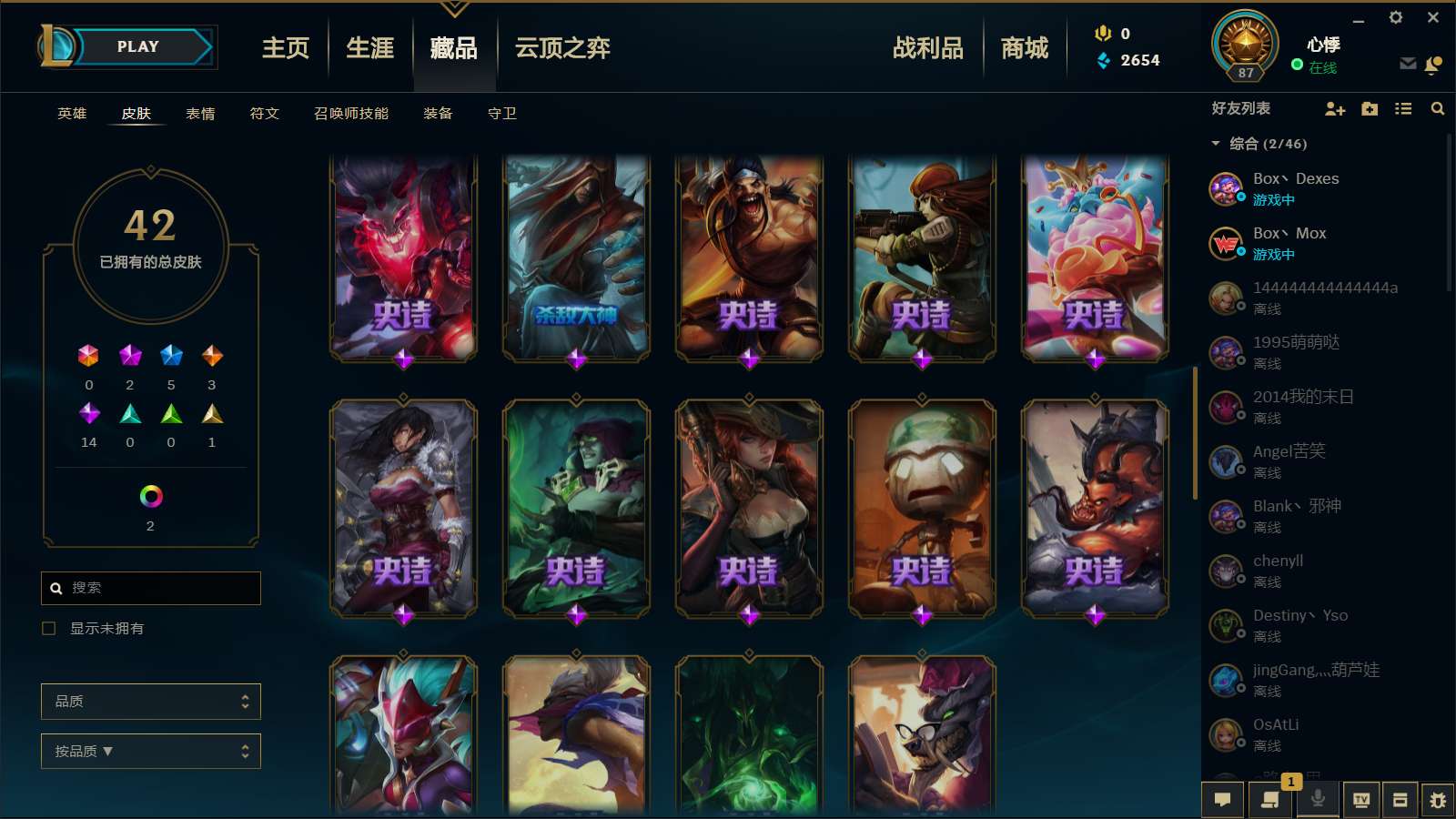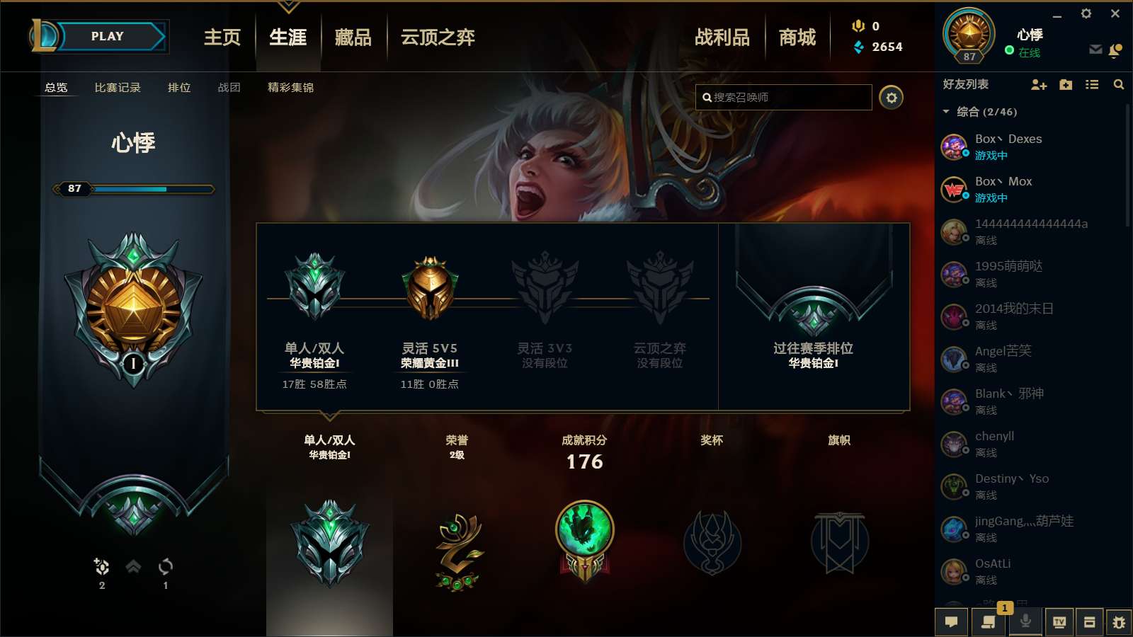 铂金段位 花木兰 灌篮高手等等皮肤