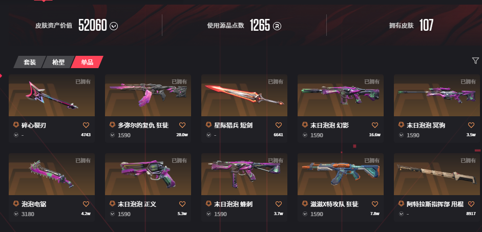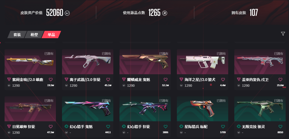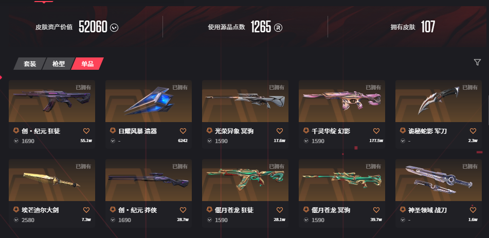 • 武器皮肤数量: 107