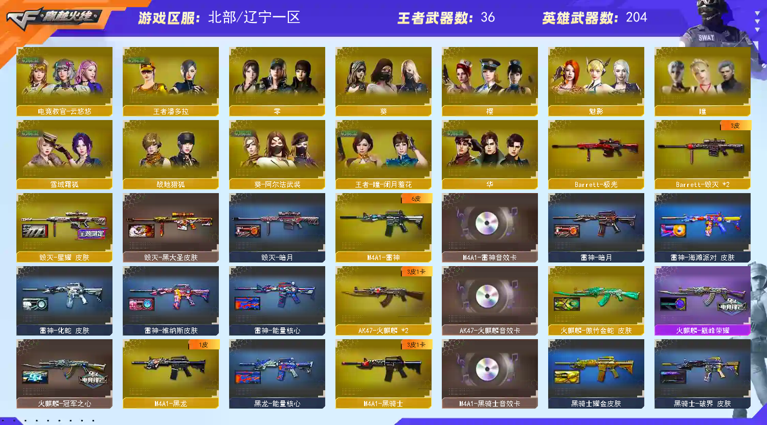 首页 > 租号大厅 > 穿越火线 > 网通区/辽宁一区 > 幻兽X4传说女帝幻影天戎玄豹♥幻神音效卡3皮冠军♥裁决音效卡4皮巅峰流光♥蔷薇3皮虎鱼♥5柯尔特4c