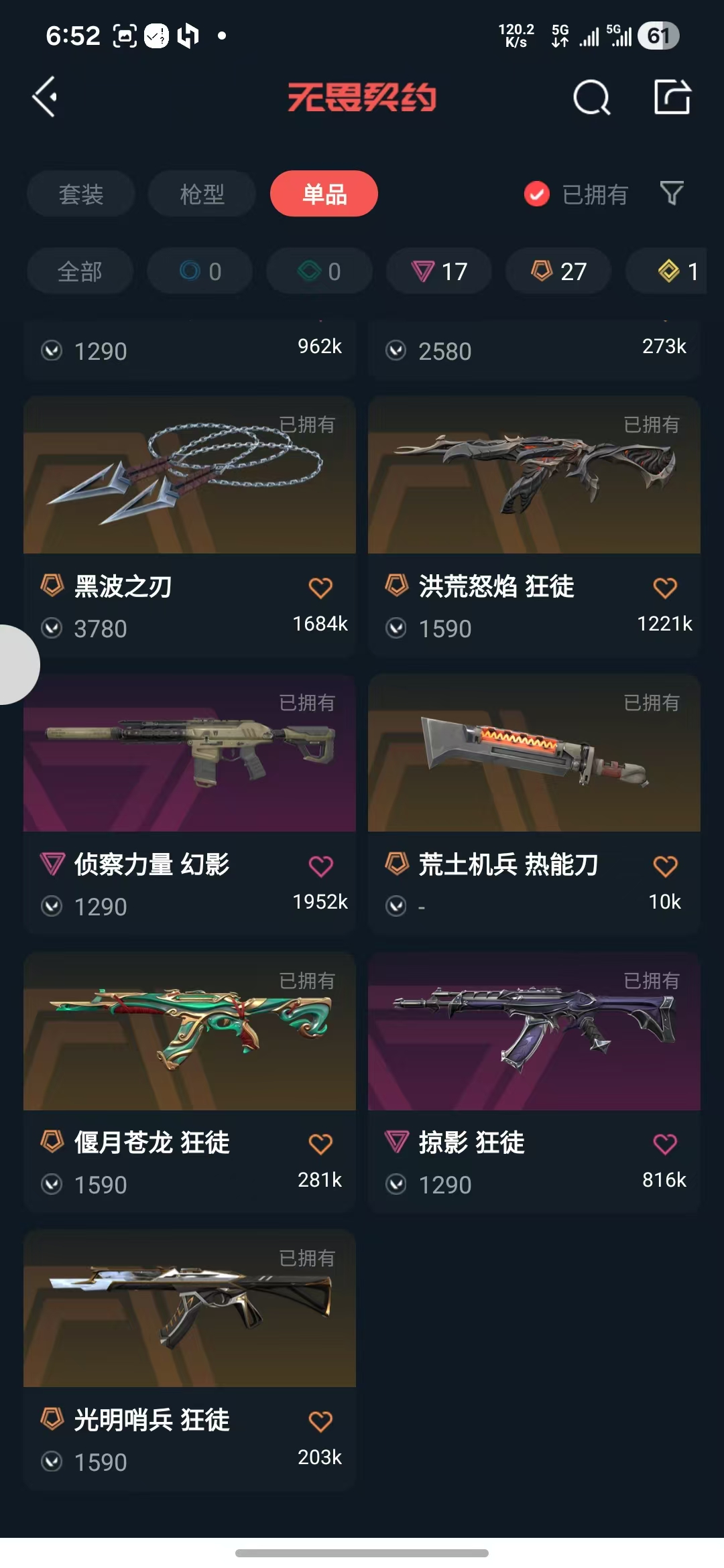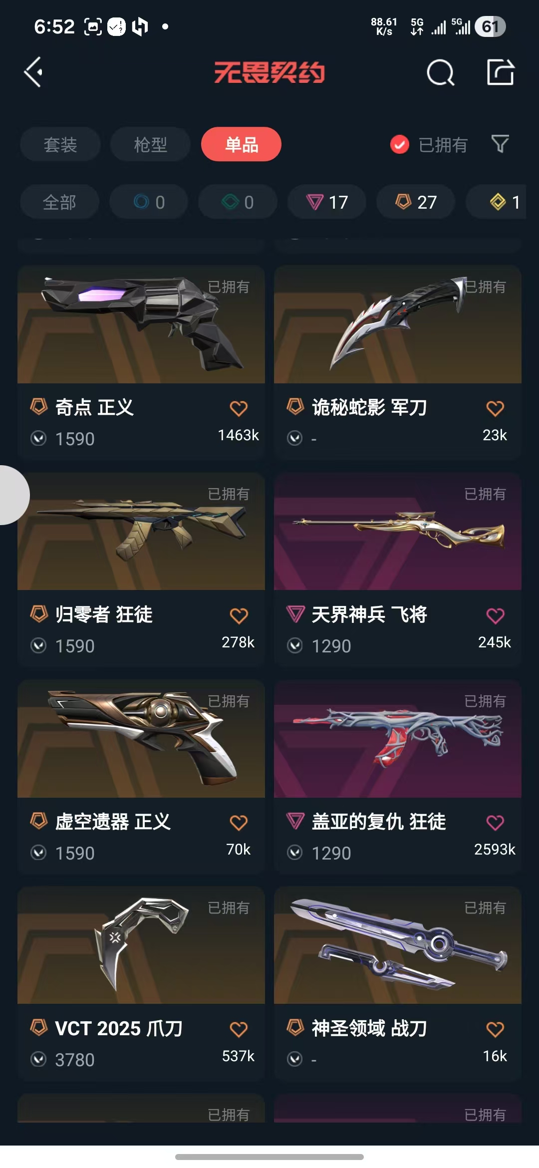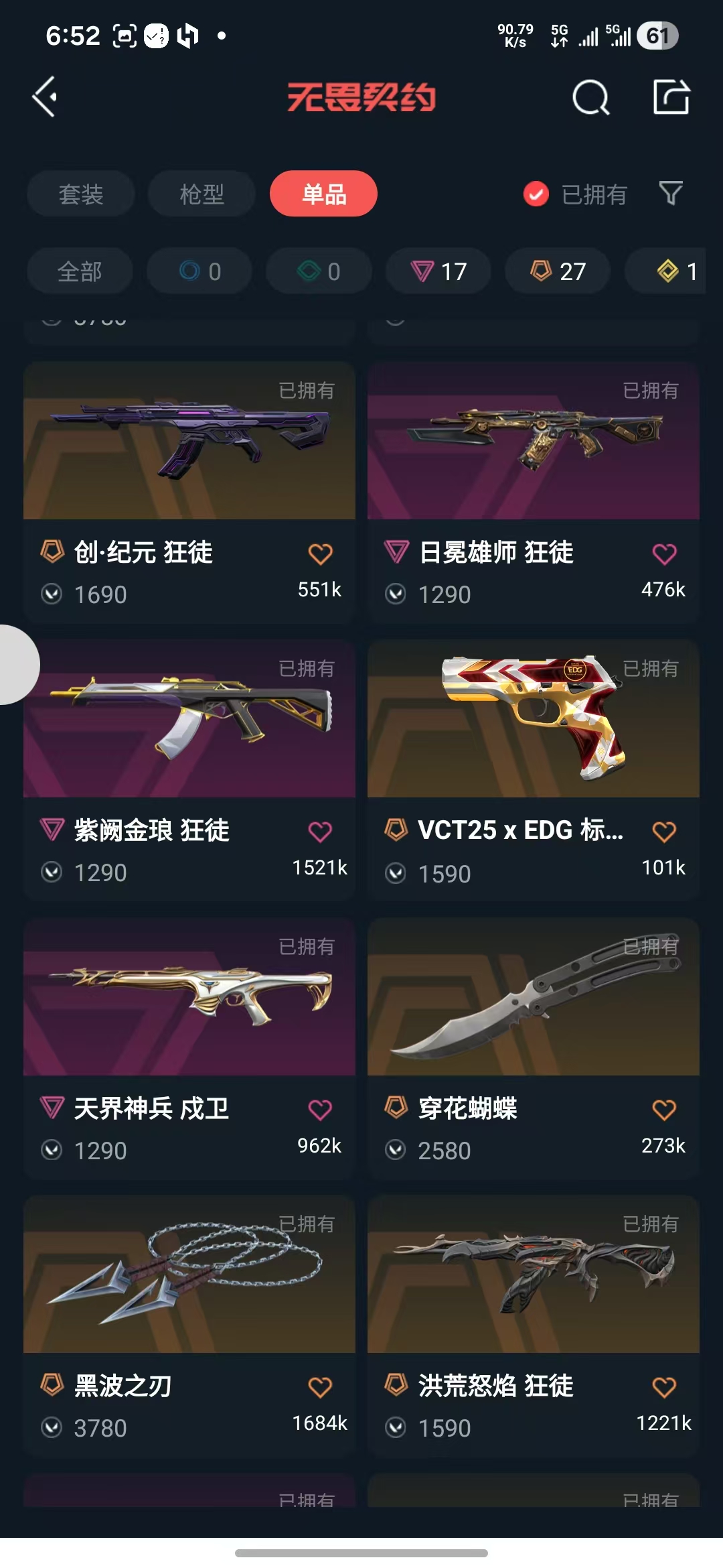 可排位6.5W资产,不能说话,VCT2025爪刀黑波之刃EDG英雄之选套装,10把狂徒,侦查恶鬼幻影