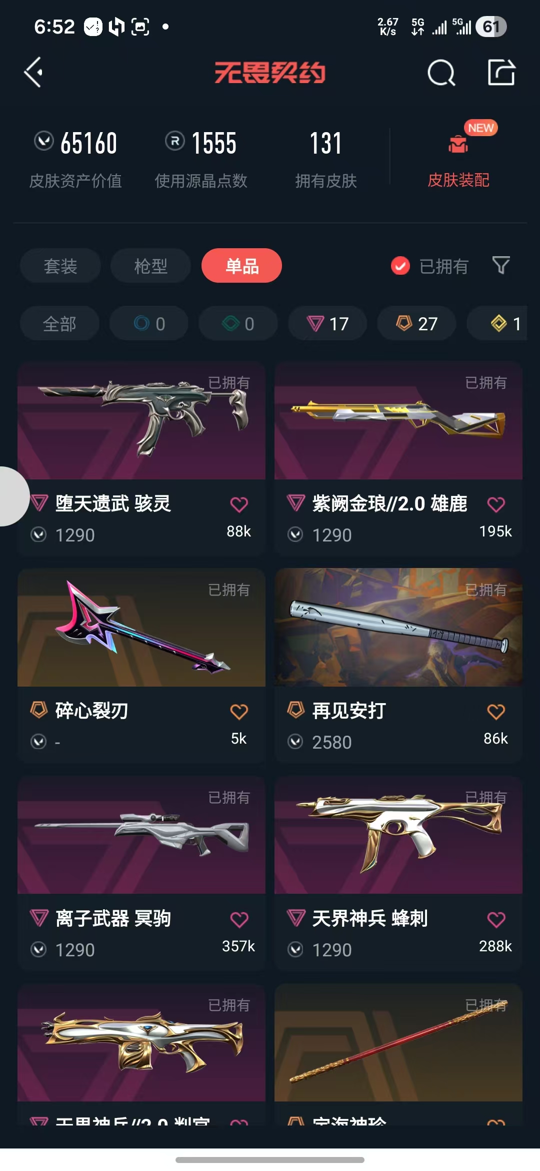 • 皮肤资产价值: 66450
