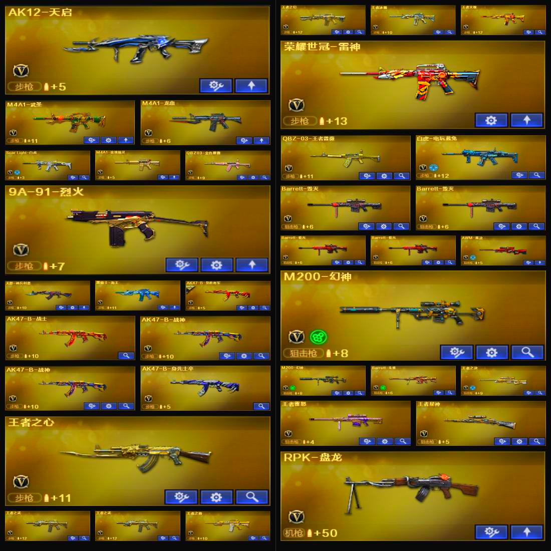 【西.部】光耀♥幻神冠军三件套♥裁决王者星神白虎电玩♥王者蔷薇雷神三件套♥白虎堕天套;荣耀世冠-柯尔特,RPK-盘龙,QBZ03-金色蔷薇,M200-幻神,Scar Light-白虎,传说暗裔,