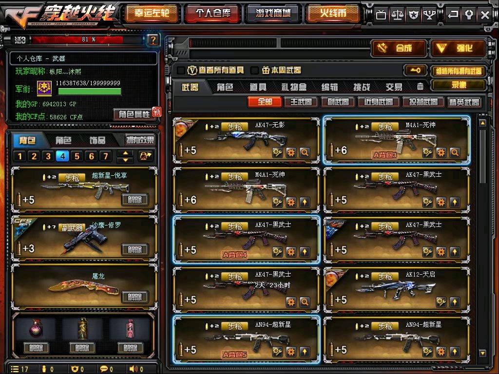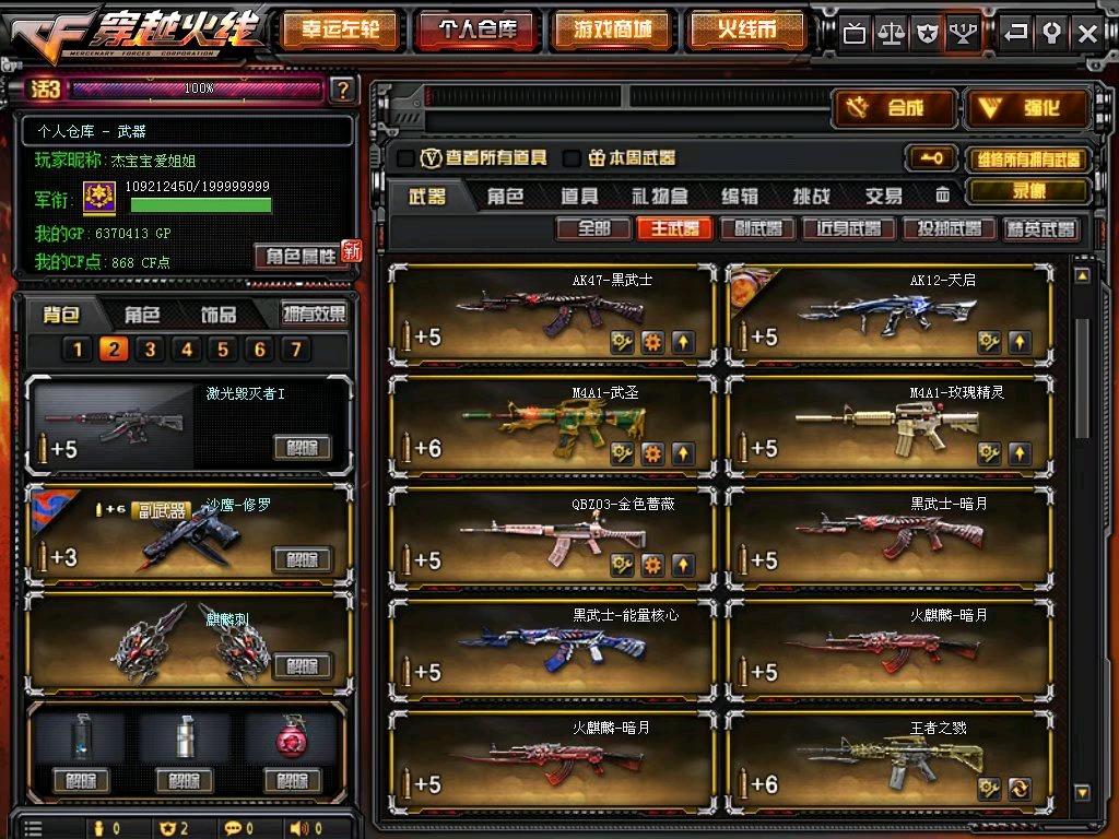 • 游戏区服:穿越火线 / 电信区 / 安徽一区
