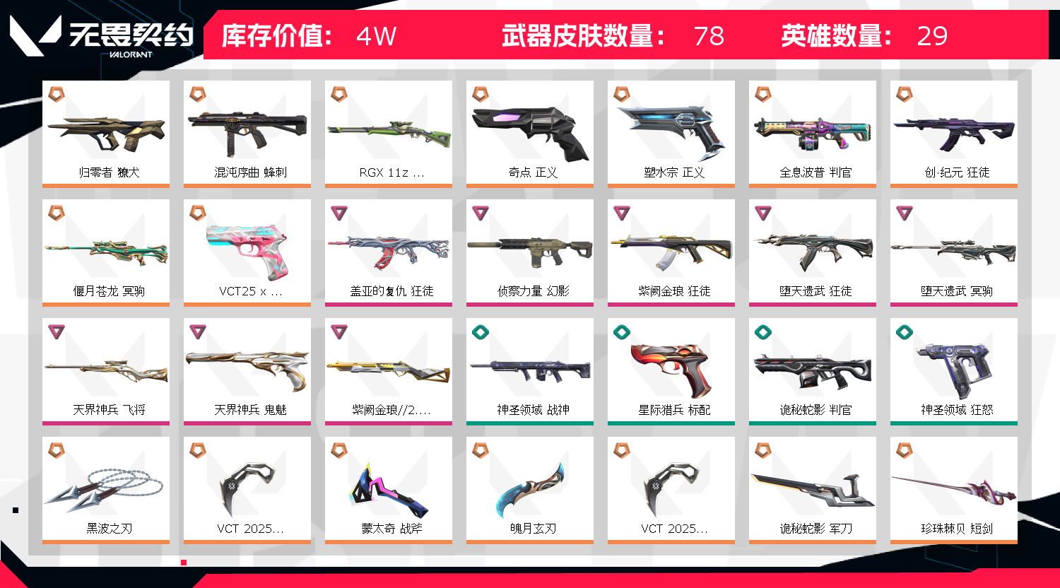 • 游戏区服:无畏契约-wegame / wegame / wegame
