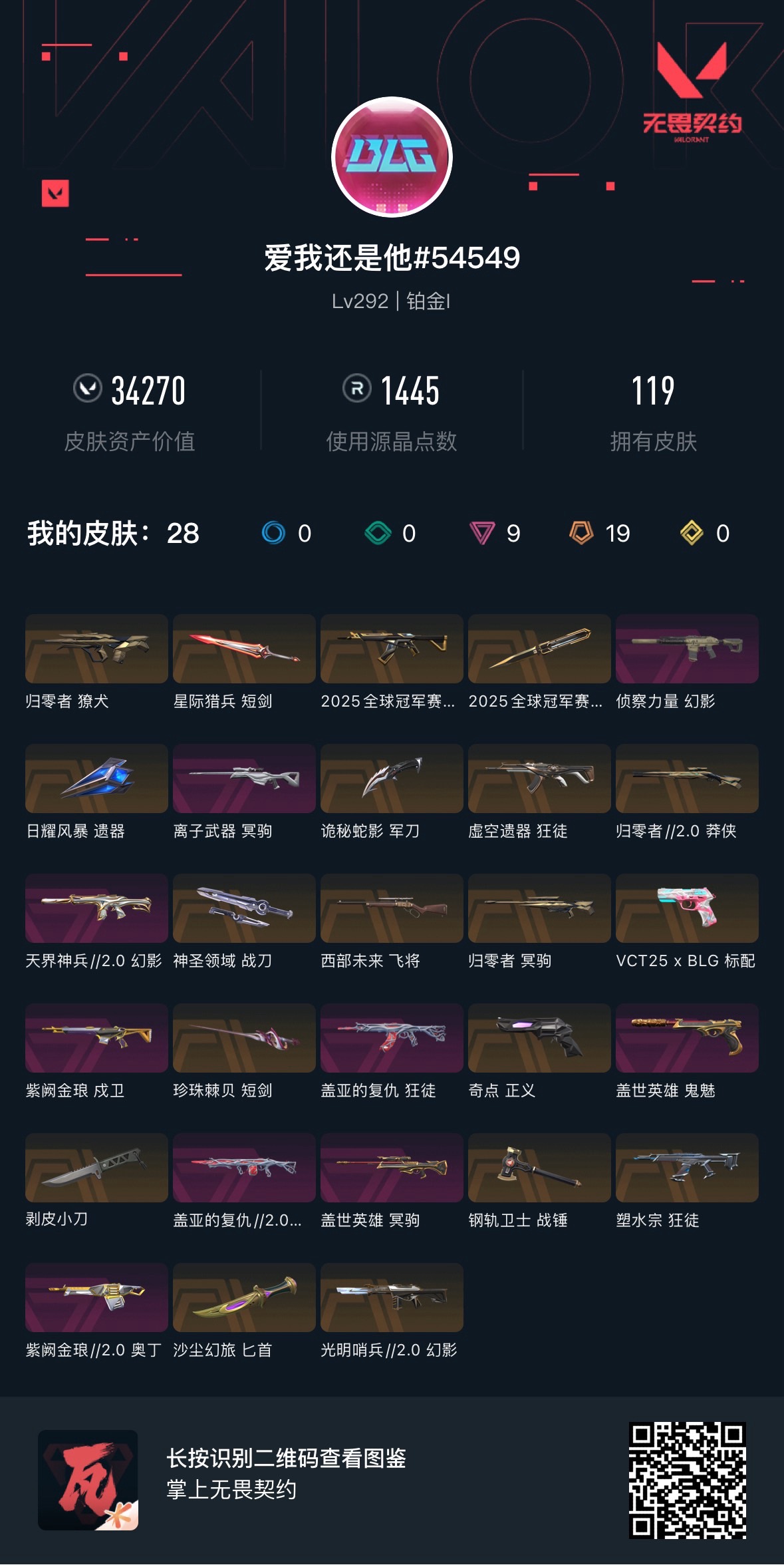 🈲挂机 炸鱼永久拉黑 英雄24 武器皮肤数量119 BLG;