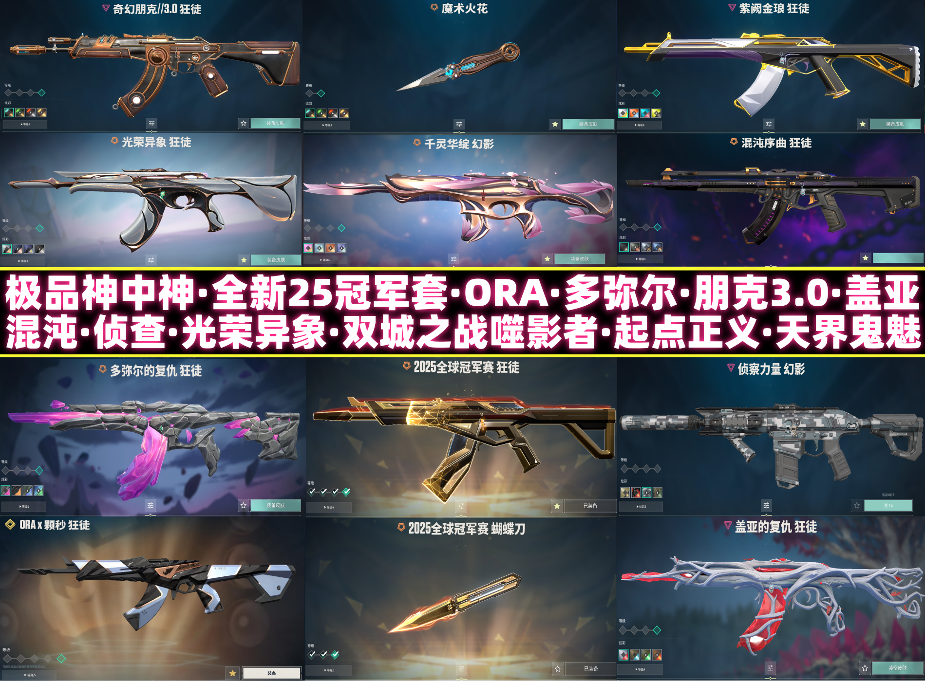 极品神中神✅全新25冠军套ORA⚡多弥尔⚡莲花扇流风回雪⚡电工钳⚡侦查盖亚混沌正义鬼魅紫金爪刀噬影者