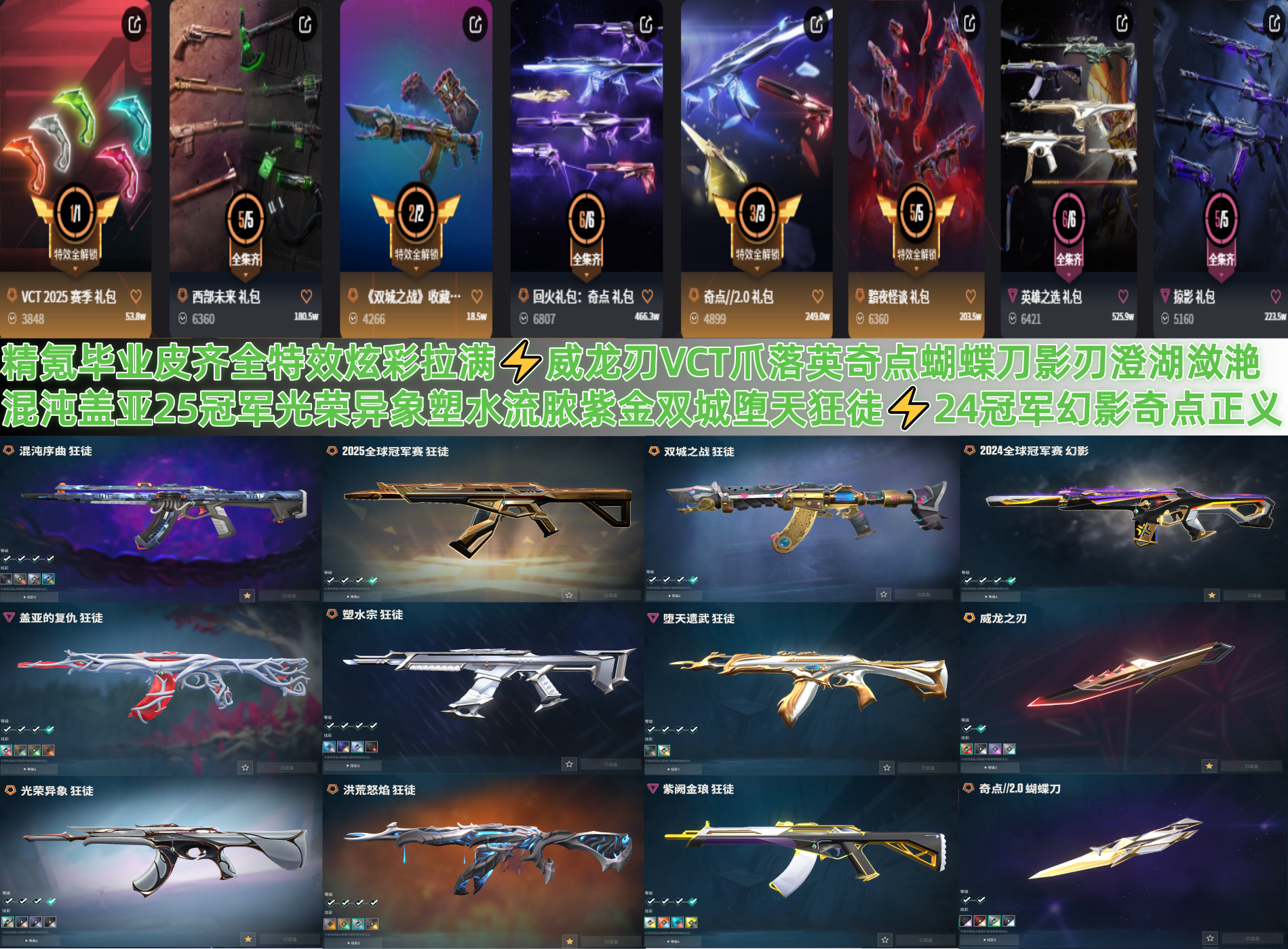 精氪毕业皮齐全特效炫彩拉满⚡威龙刃VCT落英奇点蝴蝶刀⚡25冠军混沌盖亚光荣异象紫金ak24冠军幻影
