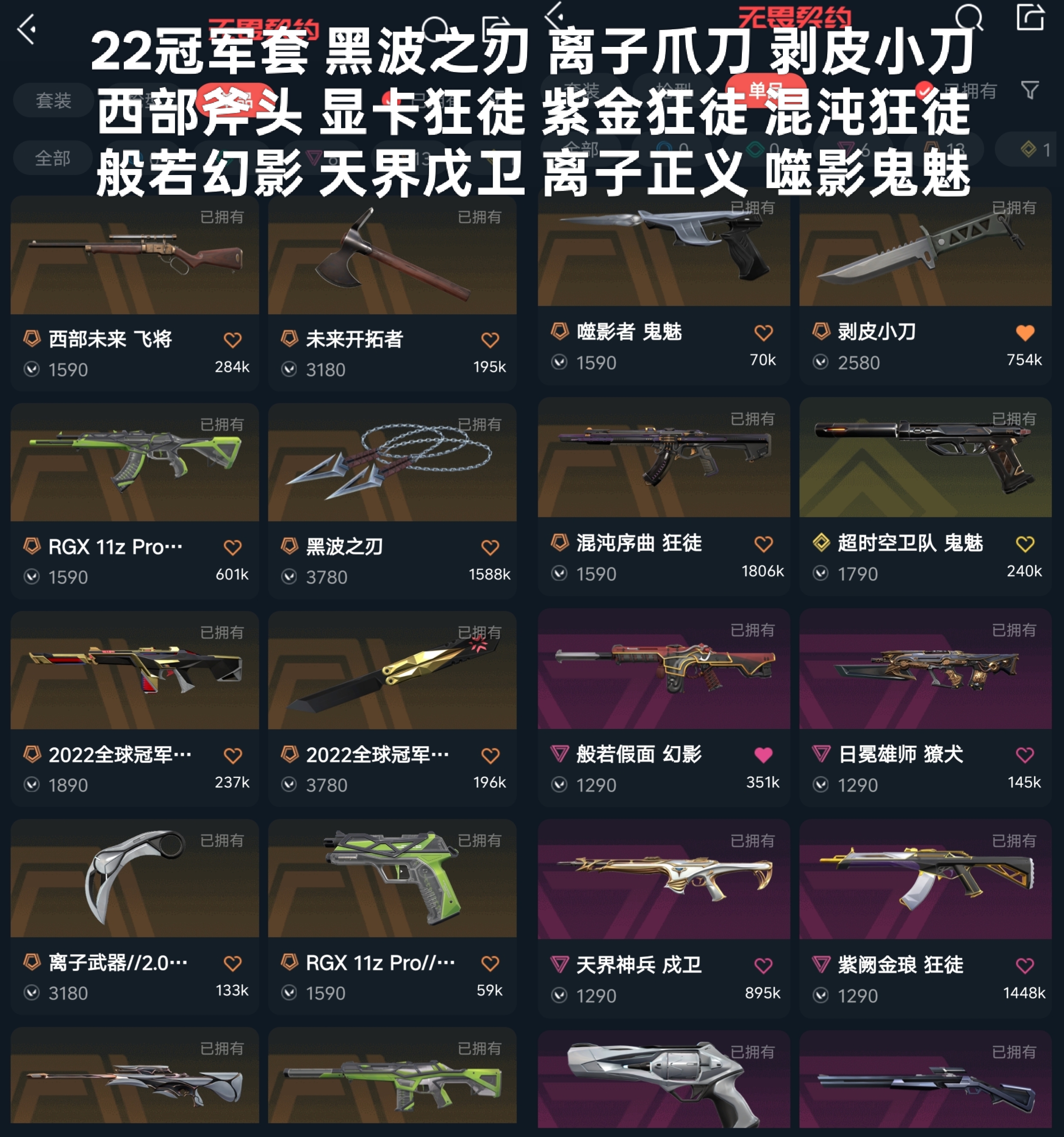 首页 > 租号大厅 > 无畏契约-wegame > wegame/wegame > 青铜白银💕全库神中神💕22冠军套💕黑波之刃 剥皮小刀💕显卡狂徒 般若幻影 离子正义