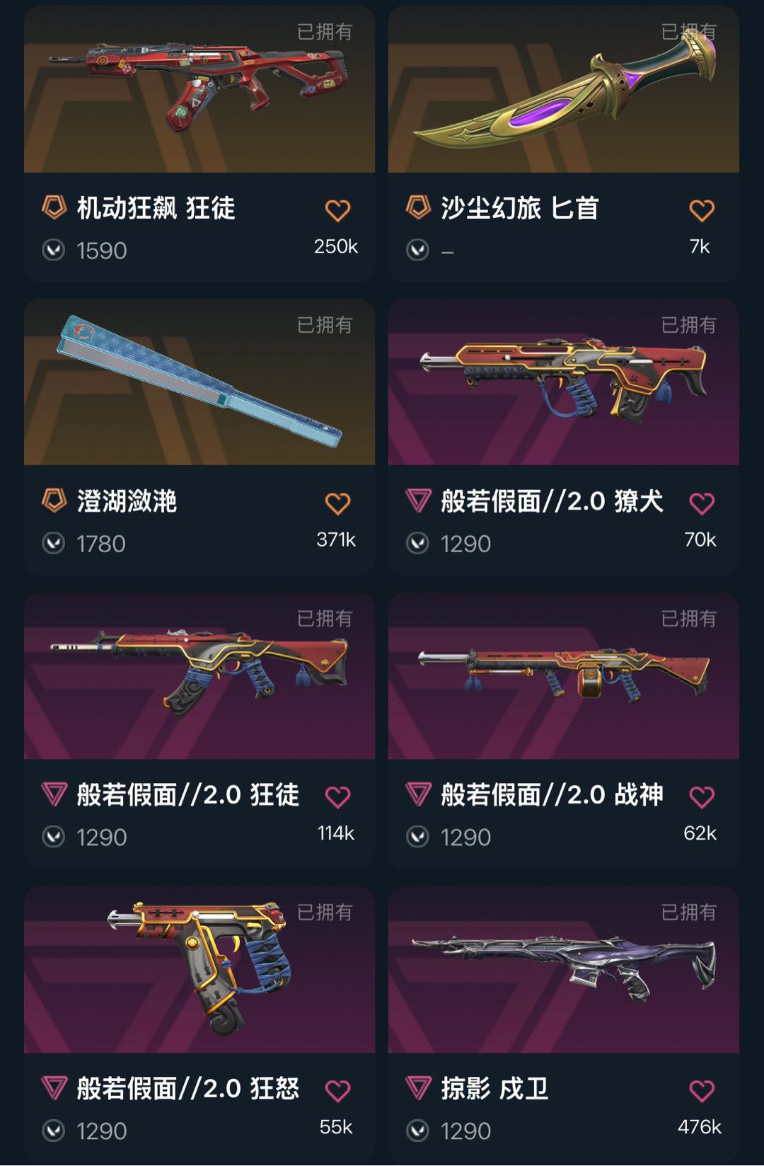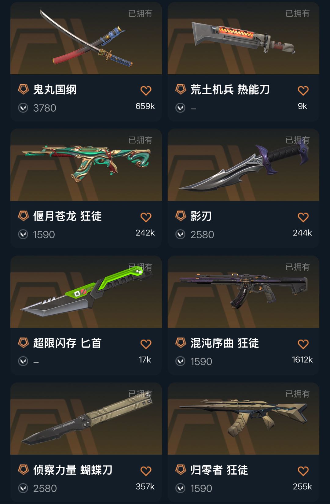 首页 > 租号大厅 > 无畏契约-wegame > wegame/wegame > 4W库鬼刀侦查蝴蝶影刃扇子苍龙狂徒混沌狂徒般若2.0套掠影套离子正义侦查幻影