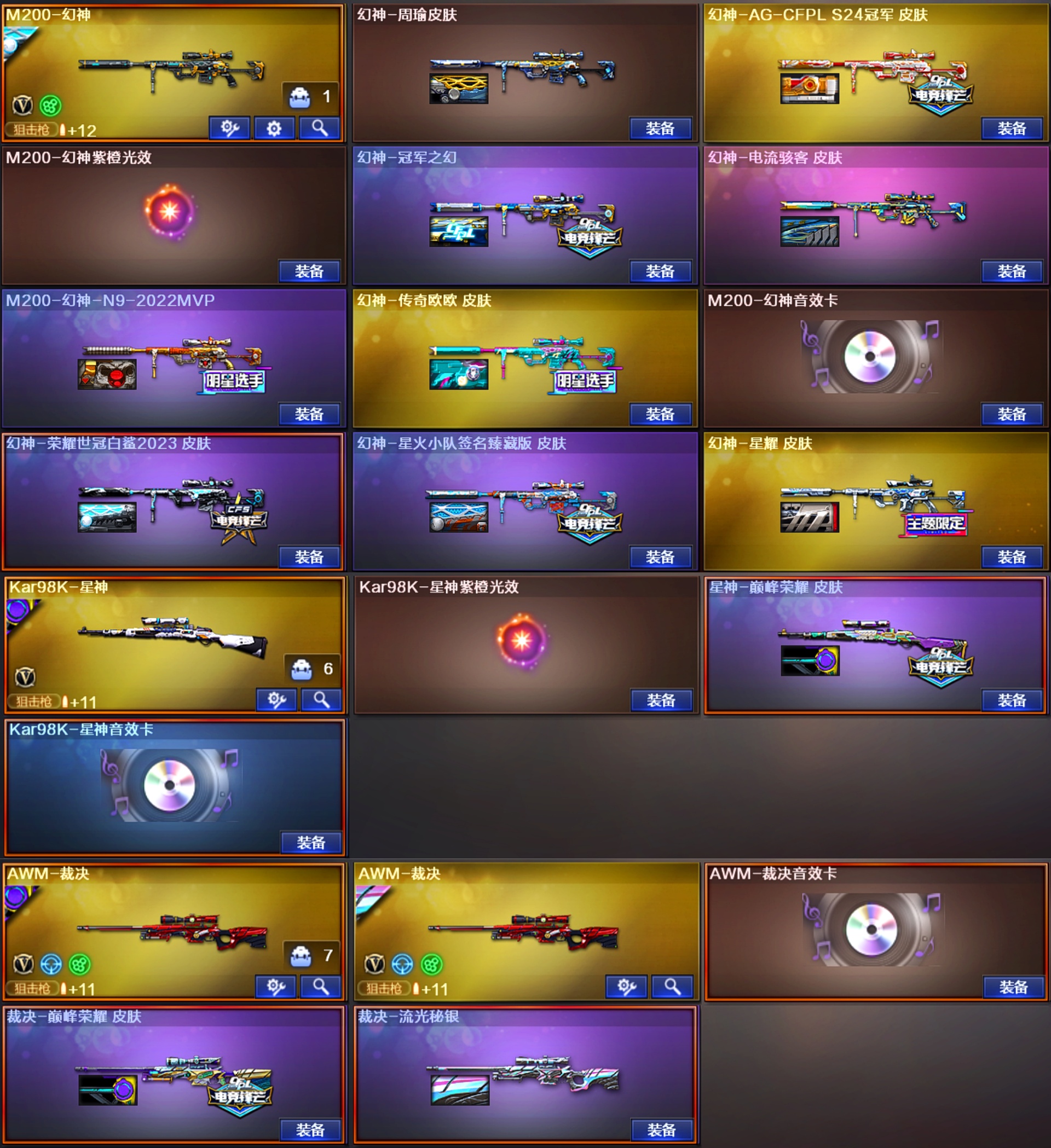 单ID(吠)金名幻兽X7♥幻神音效卡9皮白鲨欧欧星火♥裁决音效卡2皮巅峰♥蔷薇4皮念旧皮♥白虎冠军巅