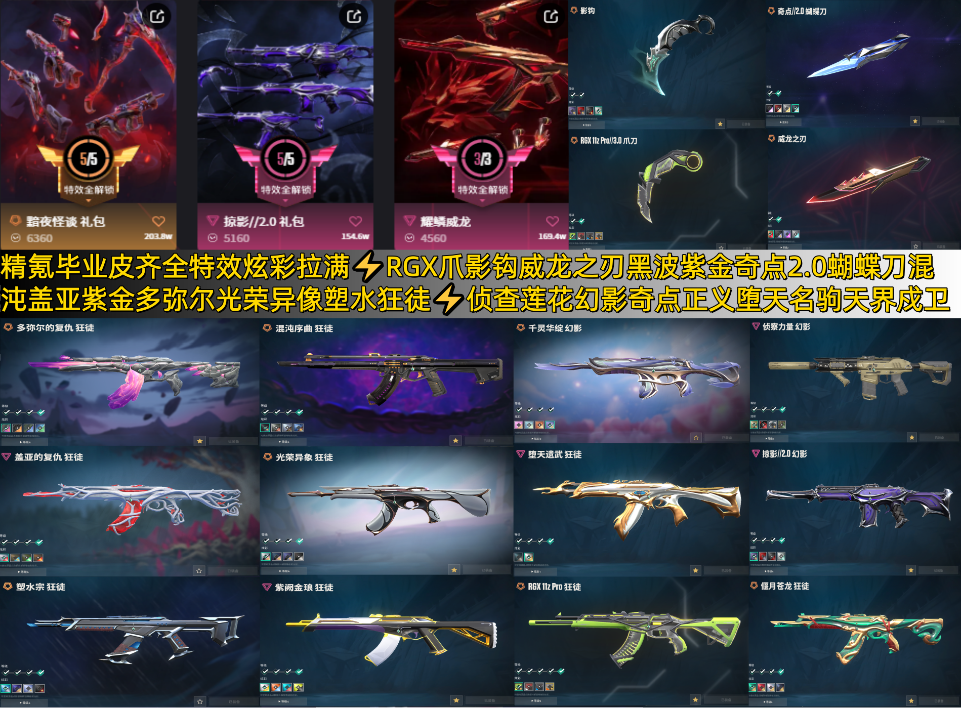 精氪毕业皮齐全特效炫彩拉满⚡影钩威龙RGX黑波紫金奇点蝴蝶刀⚡混沌盖亚多米尔光荣异像ak侦查莲花幻影