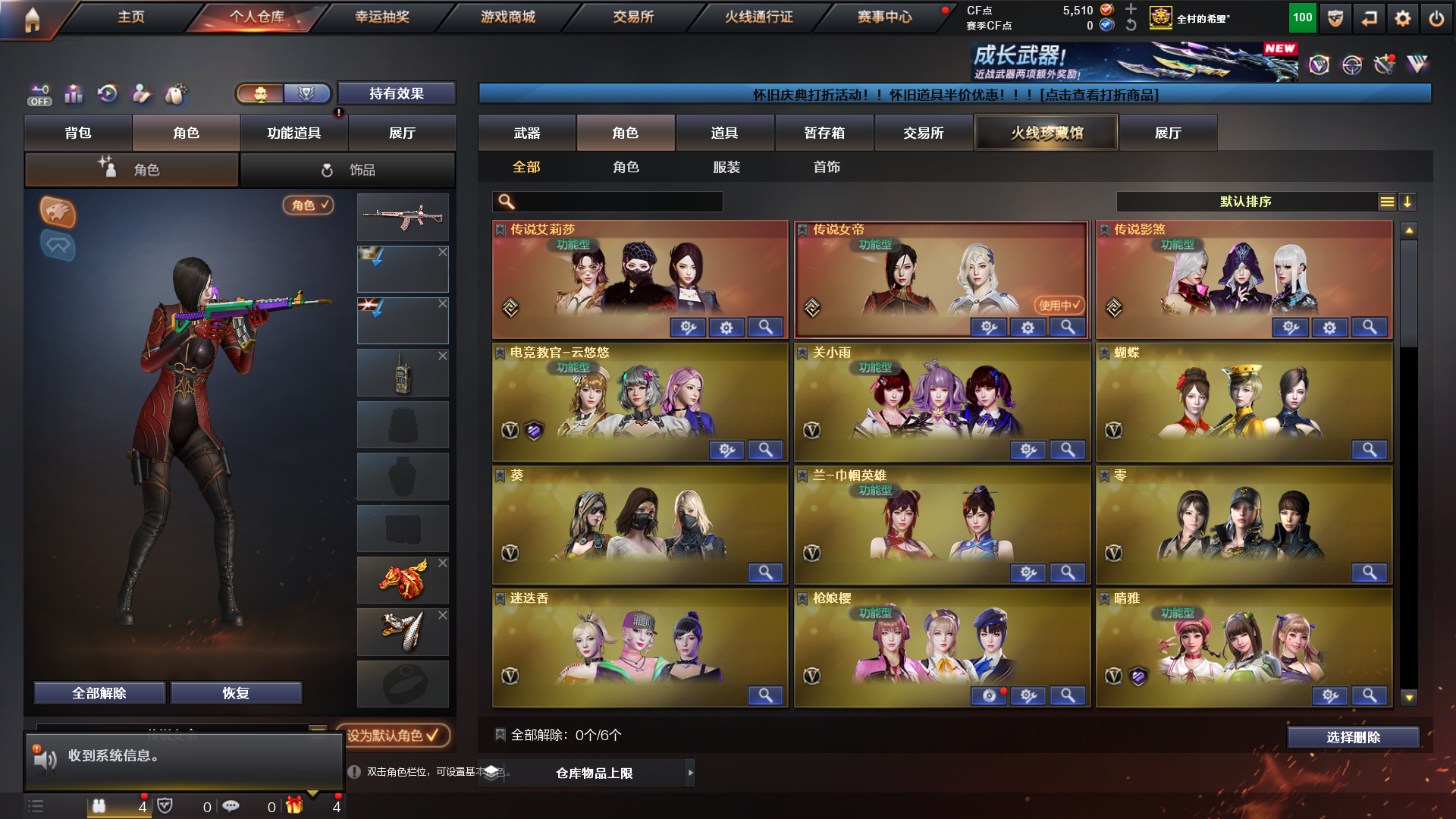 最新氪金:FAMAS G2-天戎 加利尔ACE-天袭 金蚀-机械姬 角色:机械姬 音效卡:QBZ03-天罚音效卡 皮肤:幻神-KZ-CFPLS25冠军皮肤 白虎-拼搏皮肤 星神-拼搏皮肤 QBZ03-巅峰荣耀皮肤 炽芒蝶刃-冠军炽芒皮肤 火麒麟-拼搏皮肤 毁灭-冠军之怒 火麒麟-AG战队皮肤 c4皮肤CFPL 天花板主武:传说灵眸 传说梦魇 传说圣灵 传说辉光 传说夜影 传说光耀 传说暗裔 6盘6烈6炼狱异变清道夫 毒蜂 炼狱-迷你小钢 QBZ95-幻兽 天花板副武:x2MAC-10-幻能朋克 6极品柯尔特:电竞装甲 x2竞技荣光 萌杀 x2冠军之特 10极品cop:x2旗袍 x2雷霆王者-觉醒版 x3雷霆之契 x1堕天神 x2幻灵 3极品usp:x2雷暴 x1神工天巧 5把极品沙鹰副武器 天花板近战:x1炽芒蝶刃 x1Knife-冠军之刃 x1黄金猫猫手套-白鲨 x1迷你牛牛 x1猫猫手套 x1女皇利刃-幻兽 天花板手雷套装:(50)套 热门皮肤音效:幻神:幻神音效卡 巅峰荣耀 N9-2022MVP 电流骇客 荣耀世冠白鲨 黄忠 降龙 纸灯龙 周瑜 热门皮肤音效:裁决:流光秘银 热门皮肤音效:天龙:传奇70KG 热门皮肤音效:QBZ03-金色蔷薇:x2金色蔷薇音效卡 枪娘阿敏 AG-CFPLS19冠军 荣耀世冠白鲨 巅峰荣耀 冠军之薇 纸灯龙 热门皮肤音效:白虎:白虎音效卡 AG-CFPLS20冠军 大汉风骨 暗星 热门皮肤音效:雷神:星空 雷神音效卡 巅峰荣耀 烈虎 冠军之魄 战神赵云 机甲刑天 CFPL十周年臻藏版 宇航兔 杨戬 宠儿 能量核心 热门皮肤音效:毁灭:毁灭音效卡 星空 x2荣耀之怒 黑大圣 x5暗月 战神张飞 热门皮肤音效:龙啸:纸灯龙 冠军之啸 热门皮肤音效:麒麟刺:荣耀世冠白鲨 萌杀;USP-雷暴,柯尔特-冠军之特,炽芒蝶刃,Knife-冠军之刃,传说影煞,传说女帝,隼,