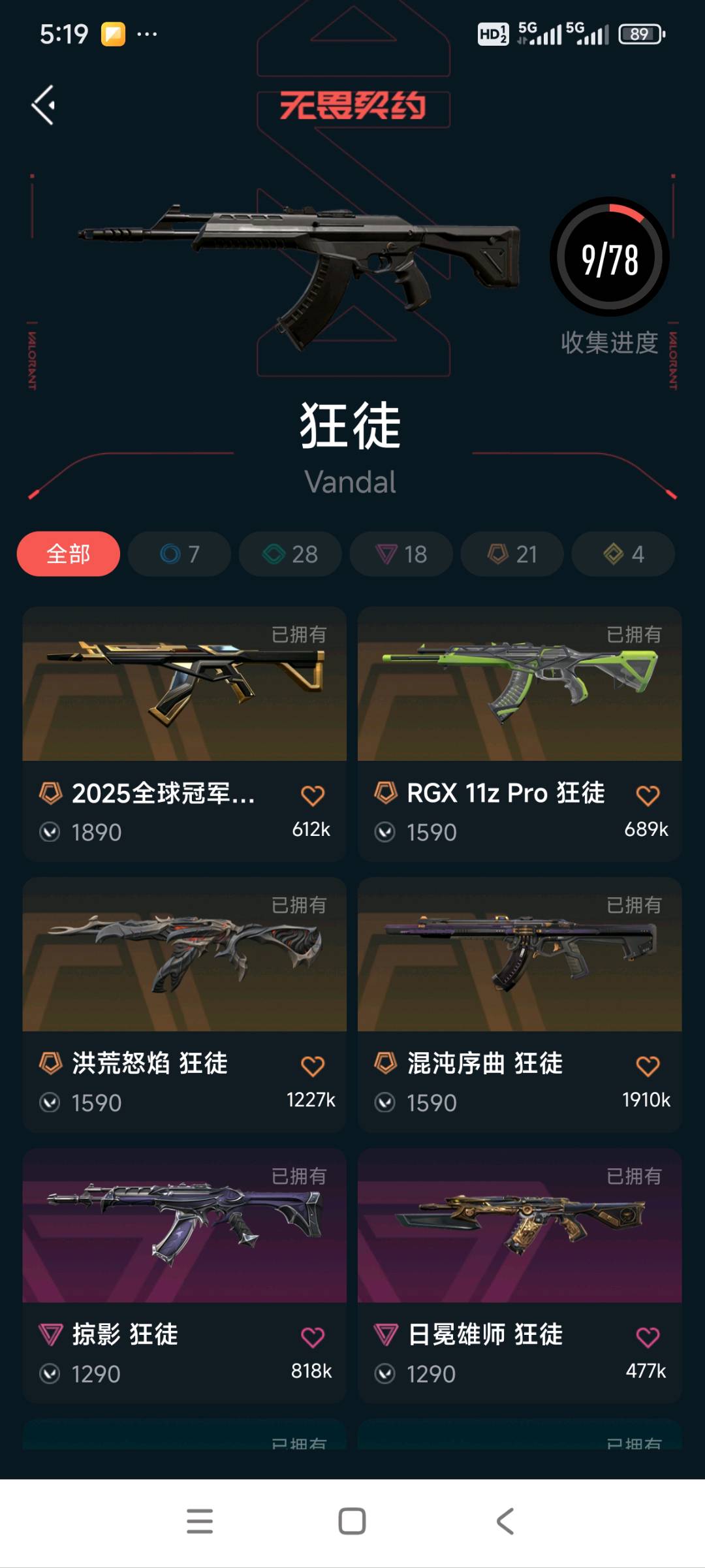 侦察幻影/混沌狂徒/洪荒狂徒/掠影狂徒/异鳞幻影/RGX狂徒/25/22冠军套/混沌蜂刺/影钩