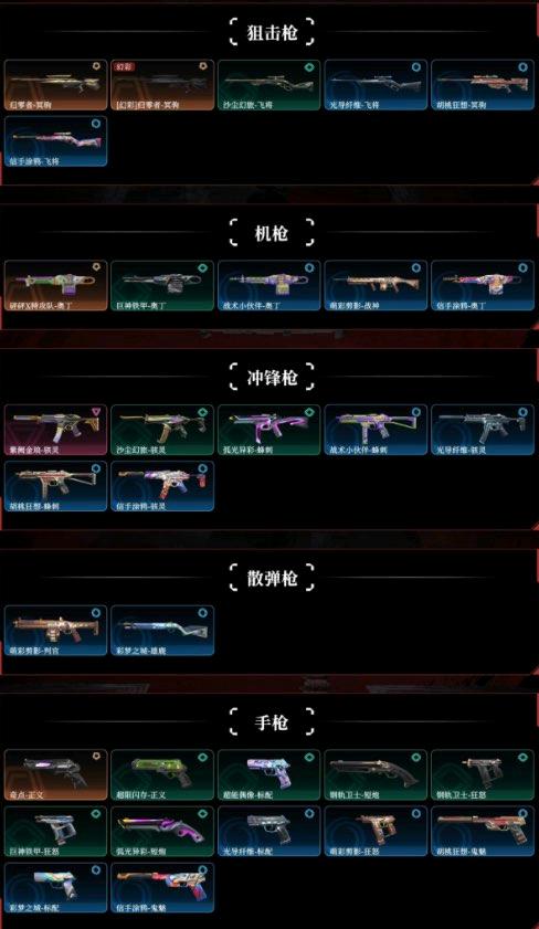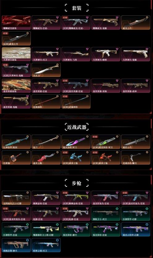 允许 英雄26 武器皮肤数量64;砰砰X特攻队 奥丁,剥皮小刀,威龙之刃,盖亚的复仇 狂徒,紫阙金琅 狂徒,天界神兵 戍卫,天界神兵 蜂刺,