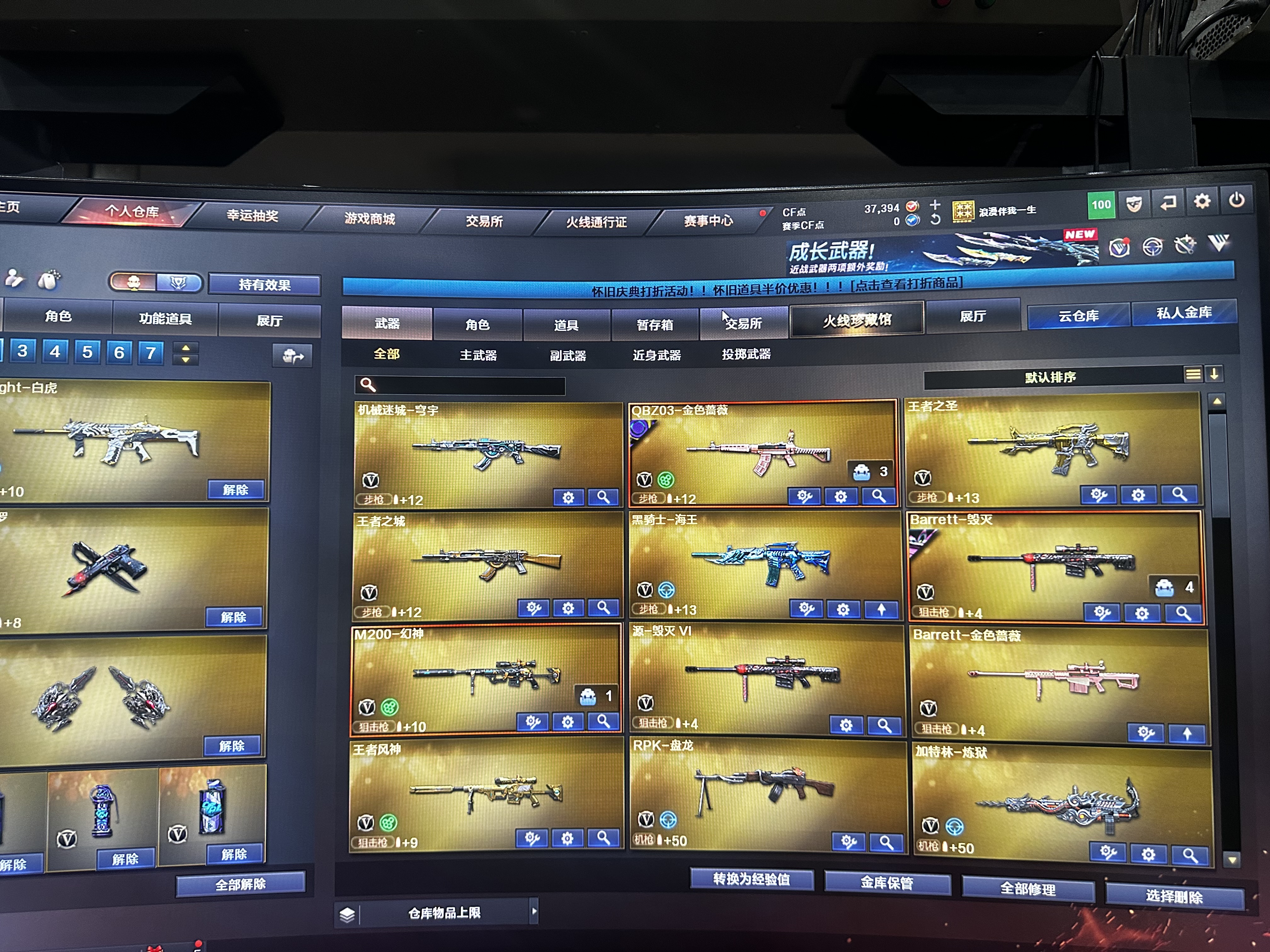 弹夹|四防角色属性|音效卡|皮肤;炽芒蝶刃,晴雅,RPK-盘龙,QBZ03-金色蔷薇,M200-幻神,Scar Light-白虎,