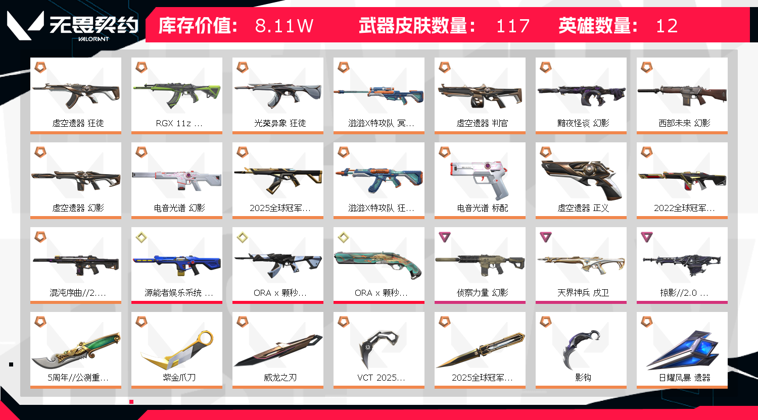 秒解颗秒25冠军22冠军25爪刀朋克3.0+掠夺2.0苍龙之刃光谱威龙+14狂徒紫金爪15刀16幻影;5周年//公测重制版 苍龙之刃,紫金爪刀,威龙之刃,VCT 2025 爪刀,虚空遗器 狂徒,源能者娱乐系统 幻影,侦察力量 幻影,