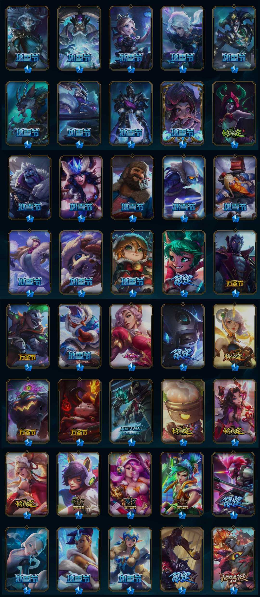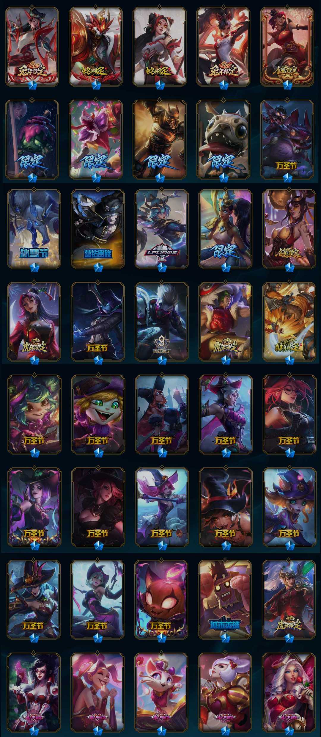 700p38神话☆三灰烬-水晶螳螂岩雀-至臻青花瓷冰女-天龙ez等-龙年卡莎-嫦娥-虎年鼠年猪年鸡年等限定-泳池-情人节-2周年诺手-新皮超多-详情看账号描述
