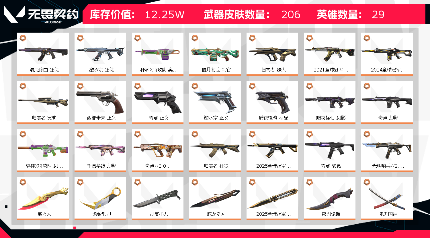 12w库存 冻结秒解 21-24-25冠军❤️离火刃❤️颗秒套❤️奇点套❤️紫金爪刀❤️归零套❤️;砰砰X特攻队 奥丁,离火刃,紫金爪刀,剥皮小刀,威龙之刃,偃月苍龙 判官,归零者 獠犬,