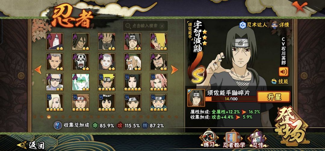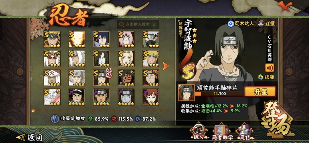 ★13s★18A★1285万战力☆忍战卡卡西☆宇智波鼬☆秽土解斑☆