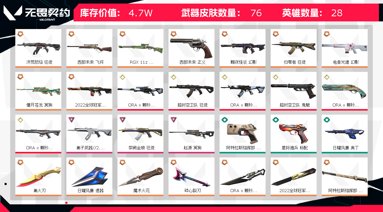 • 皮肤资产价值: 47020