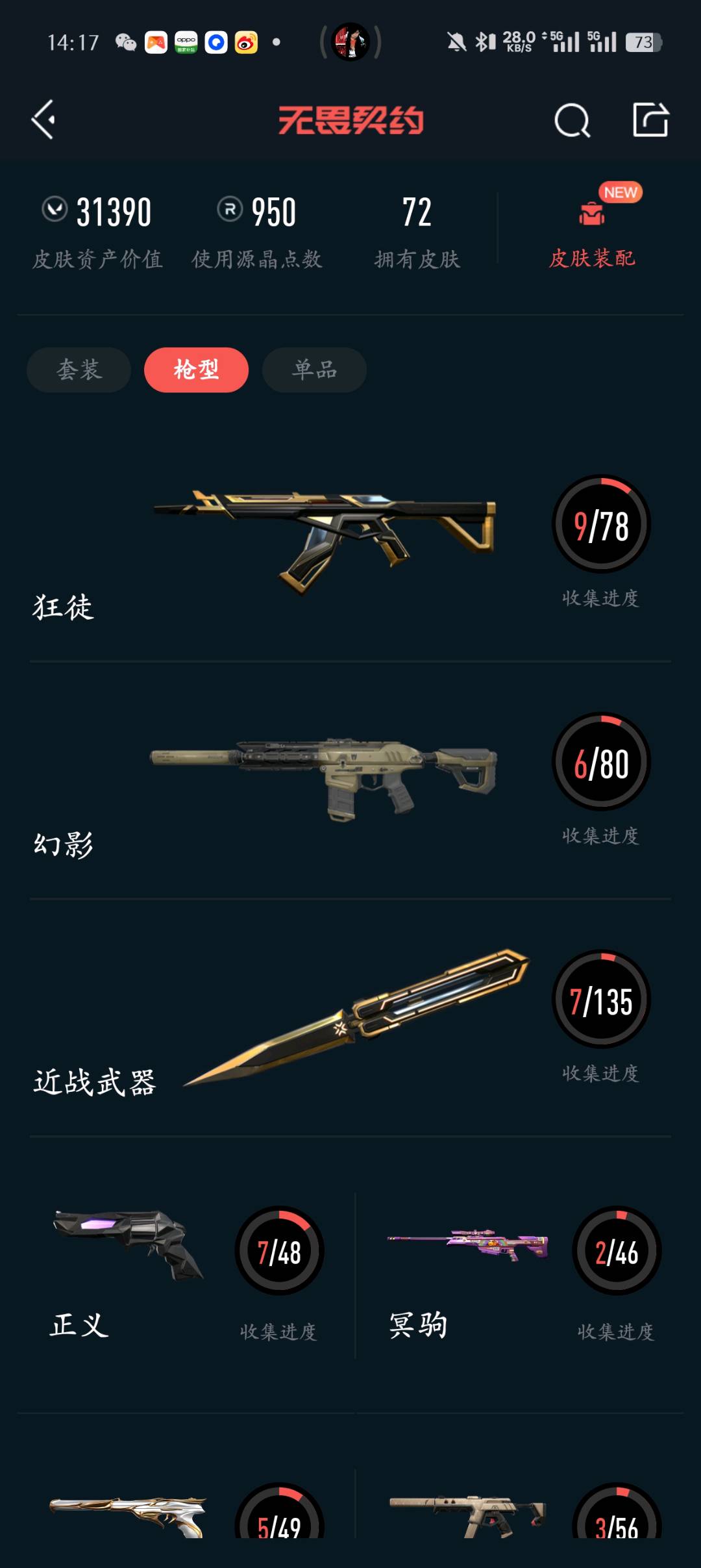允许 英雄27 武器皮肤数量72;盖亚的复仇 狂徒,侦察力量 幻影,紫阙金琅 狂徒,天界神兵 戍卫,混沌序曲 狂徒,塑水宗 狂徒,天界神兵 鬼魅,
