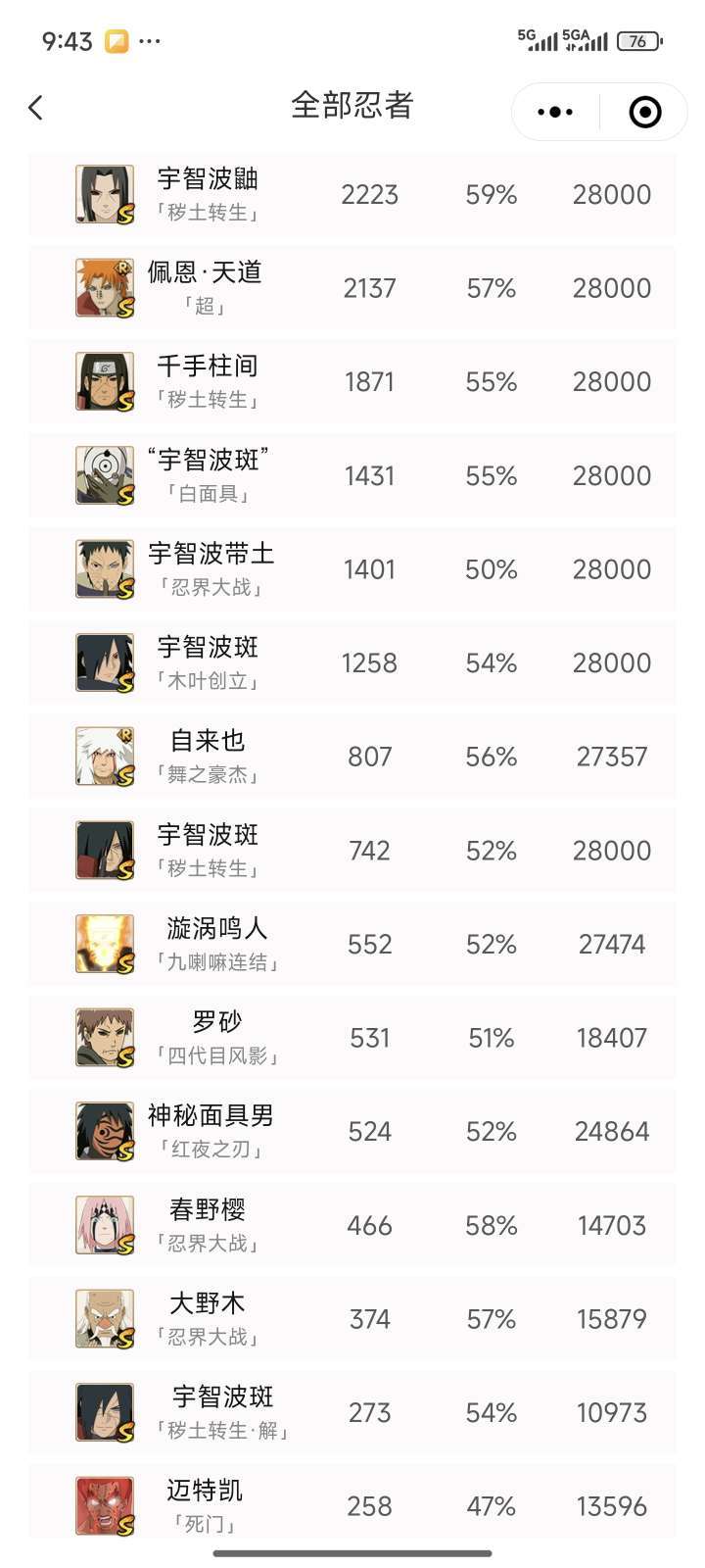 32S?49A?231忍?1300战力?破面带土,超哥,秽土鼬,金水,漂泊带土,夏日鼬