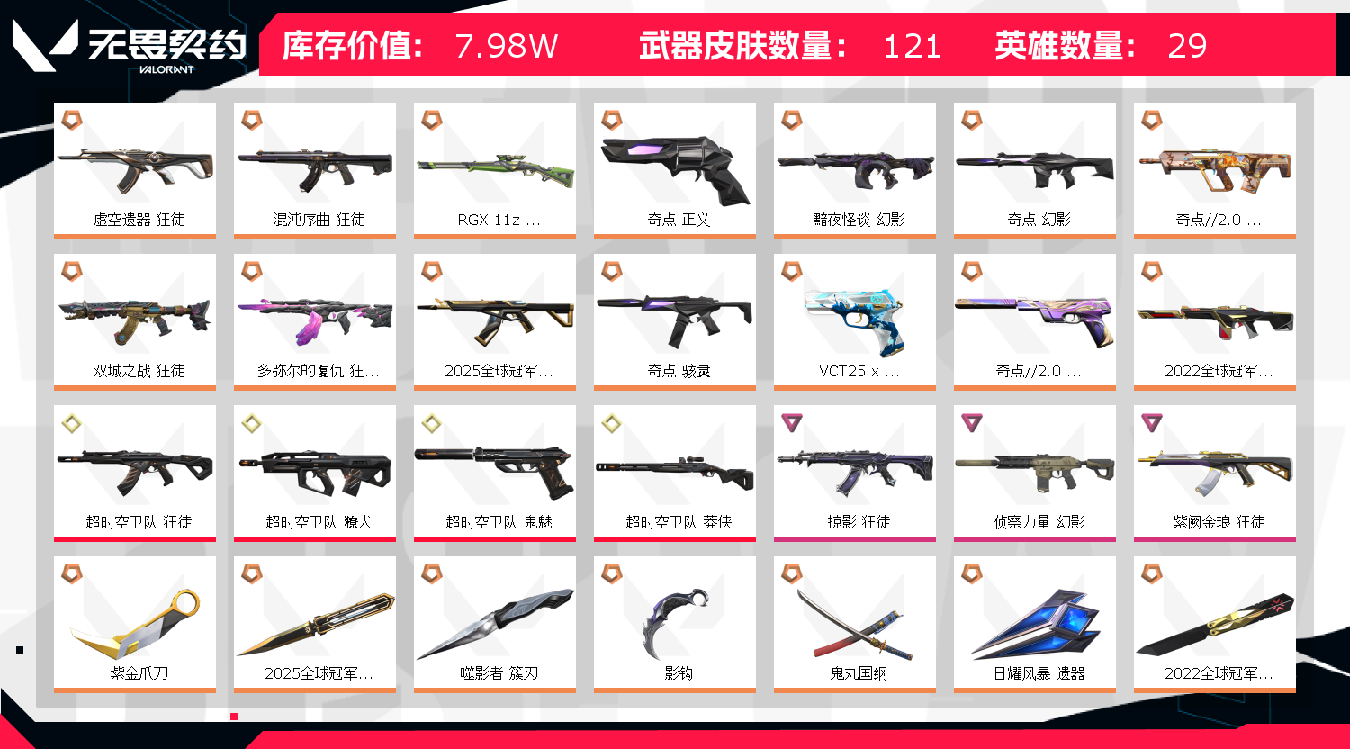 首页 > 租号大厅 > 无畏契约-wegame > wegame/wegame > 25冠军套❤️超时空卫队套✨鬼丸✨紫金爪✨影钩❤️狂徒混沌多弥尔奇点虚空弃王紫金掠影❤️幻影侦察古神