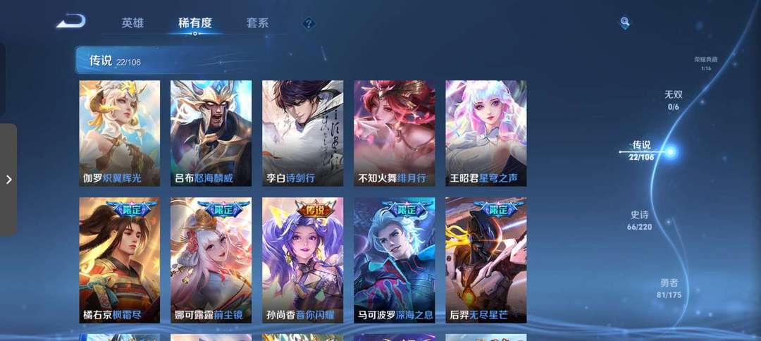 【非沄直接上号】极品V10★三历史国标★430皮★六典藏★诸葛亮新典藏★虎年五限定★鸣剑戈影★活力突击️★多限定