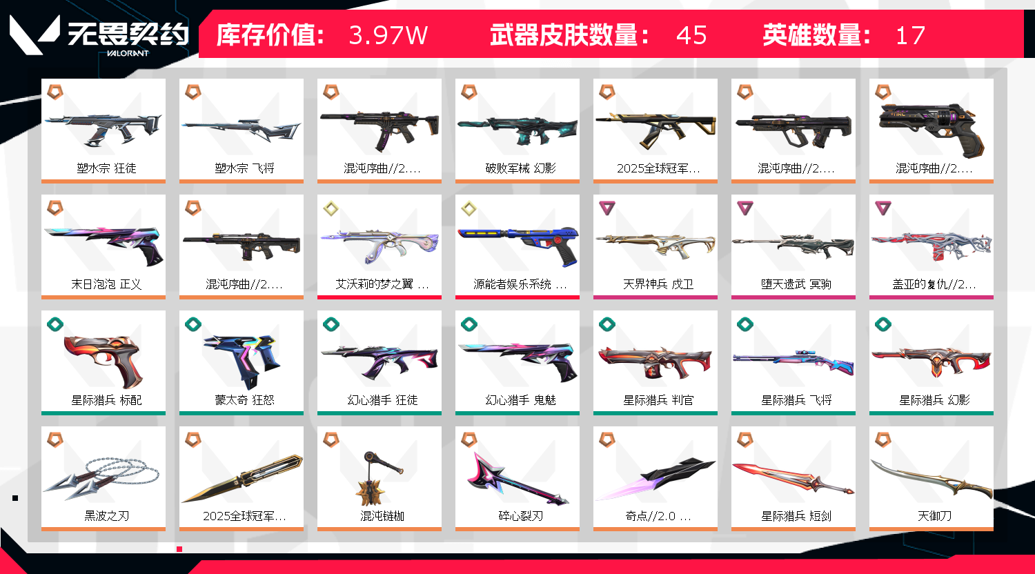 首页 > 租号大厅 > 无畏契约-wegame > wegame/wegame > 25冠军套🔥塑水宗狂徒、猫猫ak🔥黑波之刃、奇点蝴蝶刀🔥混沌序曲2.0套,堕天冥驹,塑水宗飞将