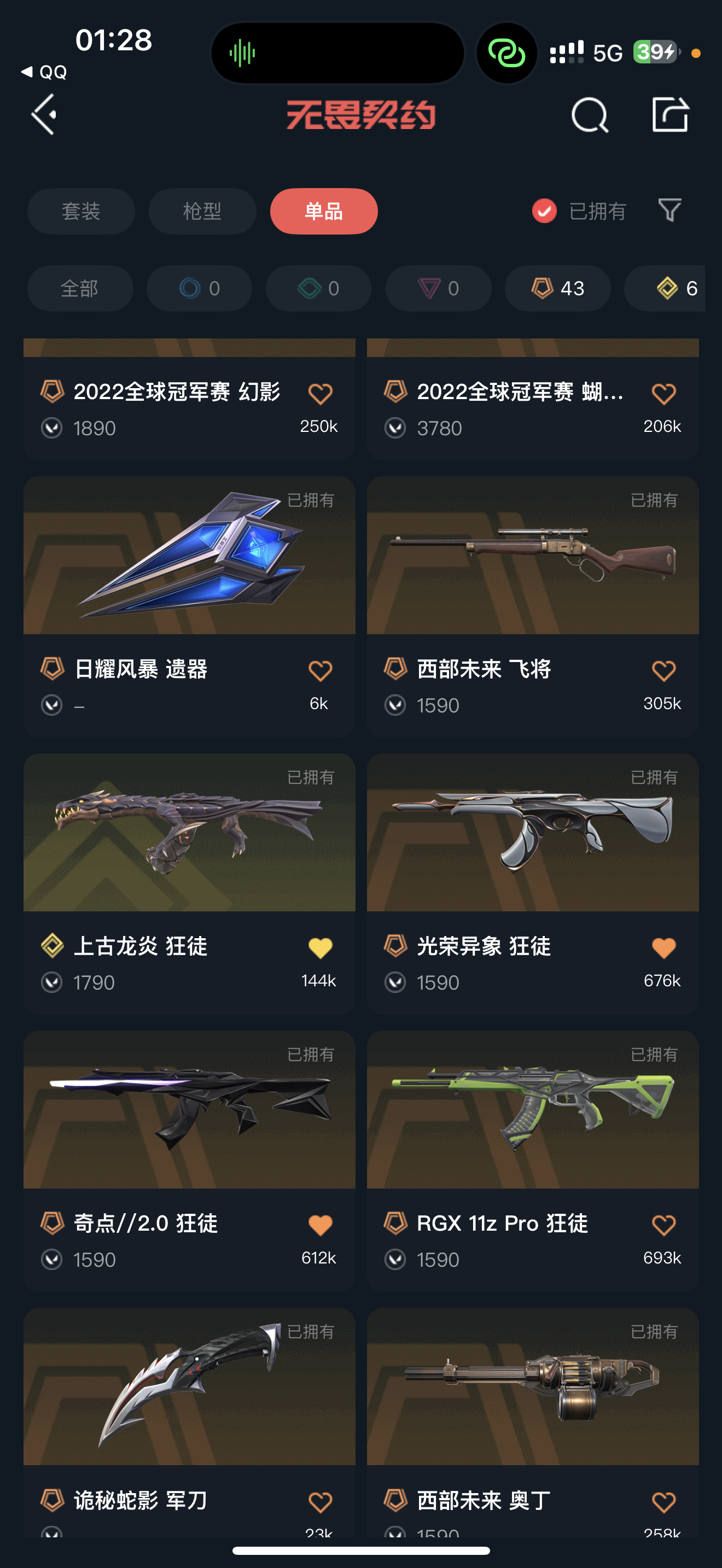 首页 > 租号大厅 > 无畏契约-wegame > wegame/wegame > 12万库存♥22冠军套♥天界2.0套♥千灵华绽套♥般若假面套♥源能者套♥24冠军幻影♥电音光谱套