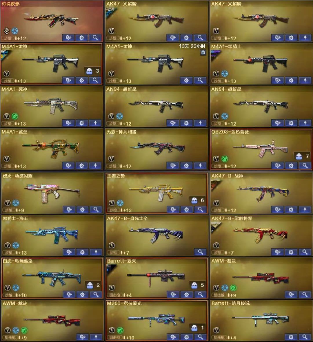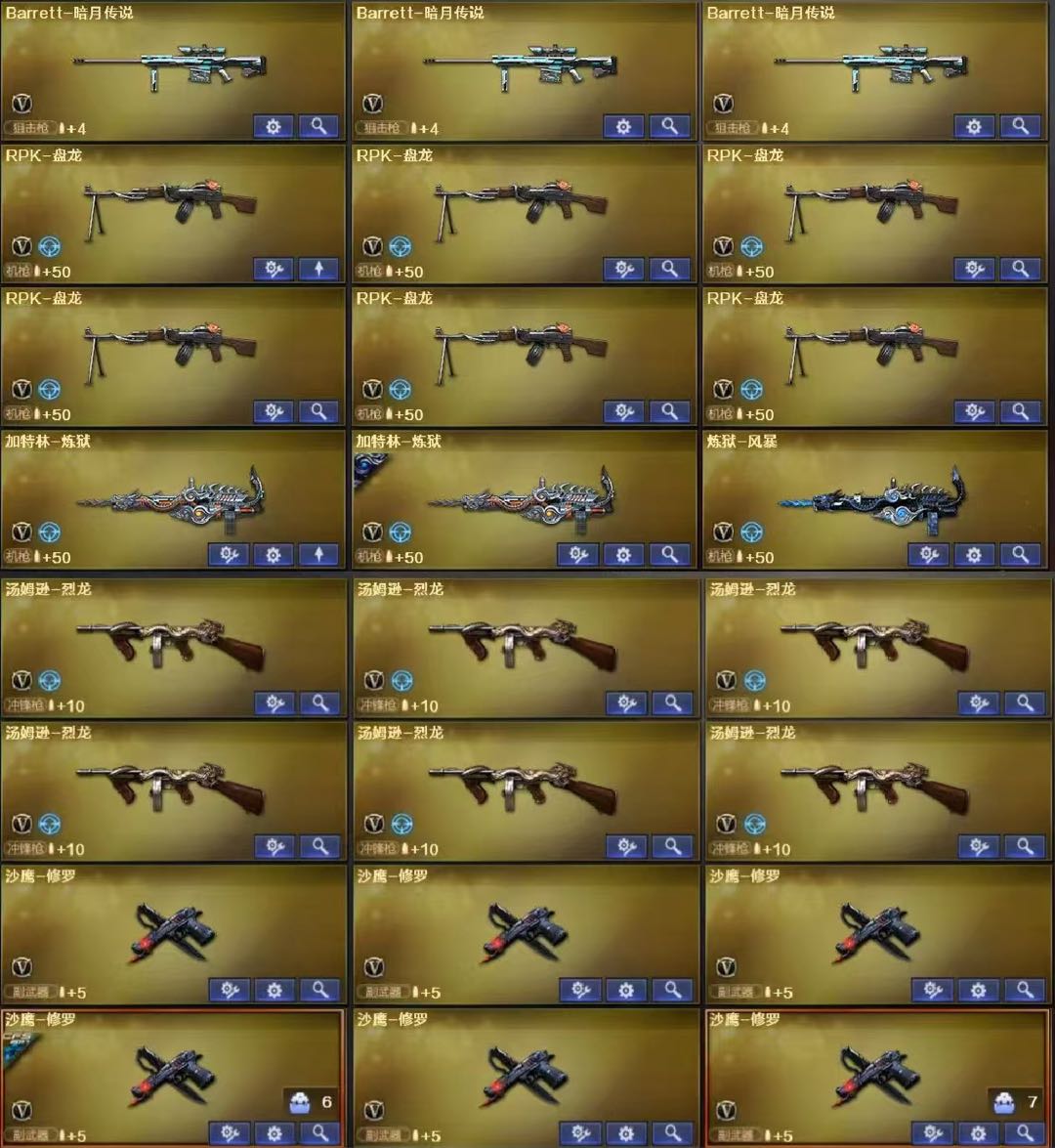 六盘六烈 白虎 蓝兔 夜影 m200竞技荣光 蔷薇俩裁决;RPK-盘龙,QBZ03-金色蔷薇,