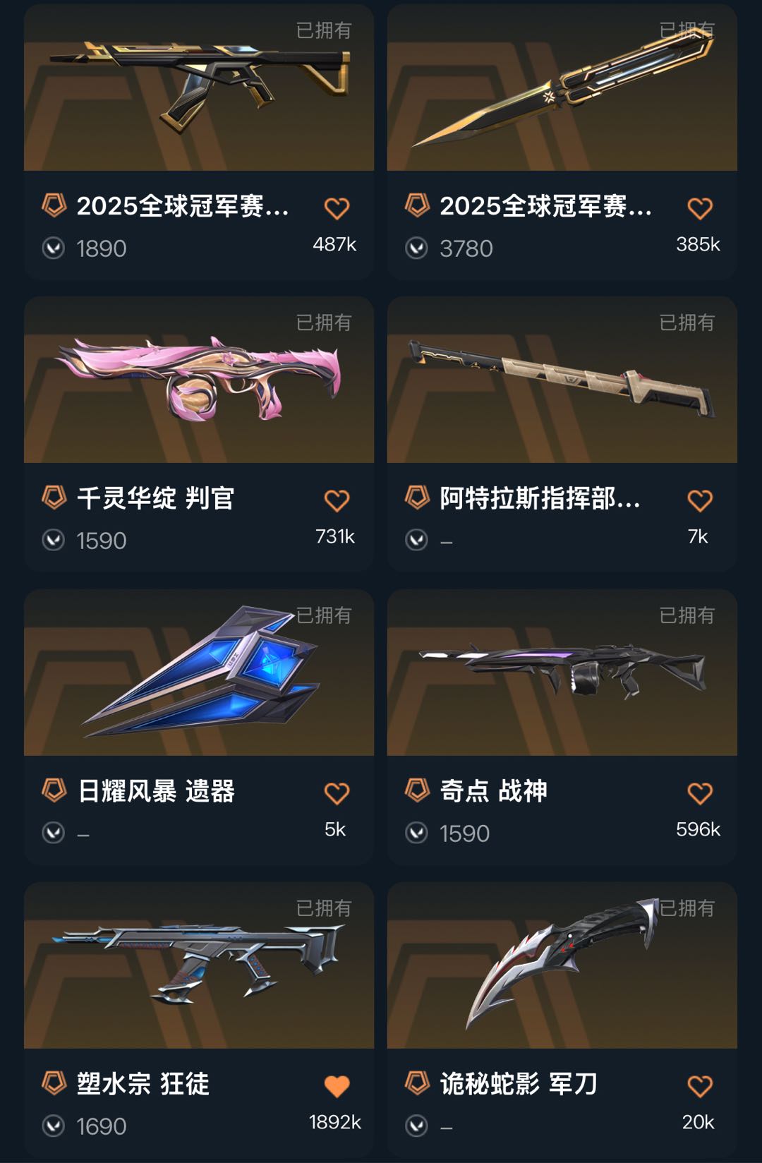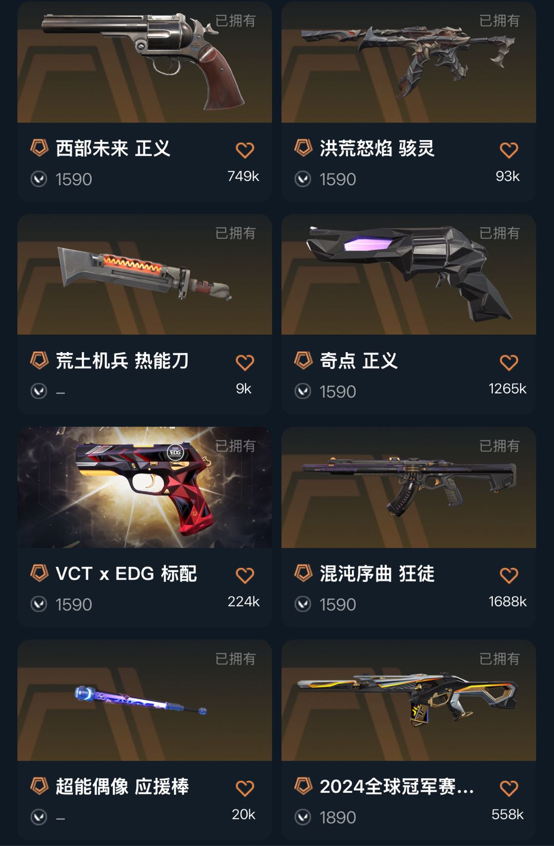 6W库/25冠军套24冠军套塑水狂徒混沌狂徒堕天狂徒vct标配每把枪都有皮肤