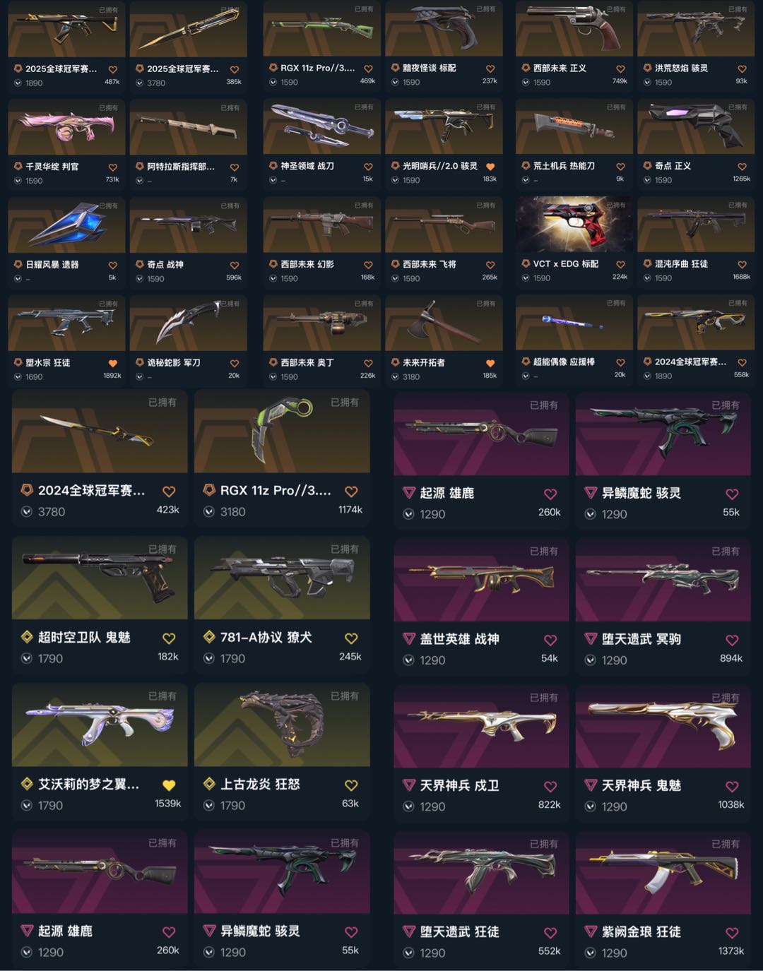 首页 > 租号大厅 > 无畏契约-wegame > wegame/wegame > 6W库/25冠军套24冠军套塑水狂徒混沌狂徒堕天狂徒vct标配每把枪都有皮肤
