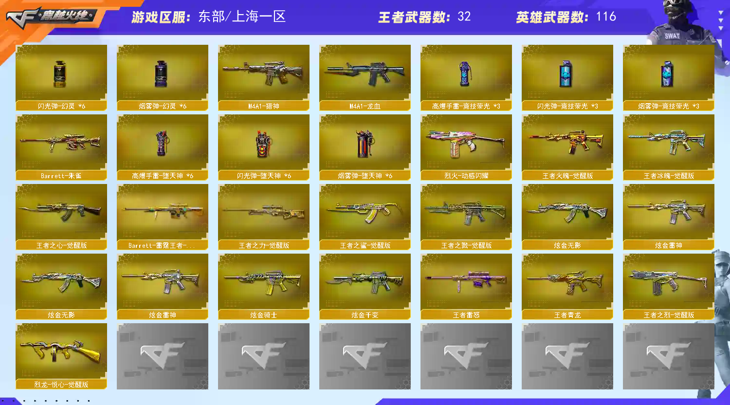 【亮点解析 幻神4皮带卡 2传说 裁决带皮 】【m200幻神+音效卡+冠军之幻+cfs2022+宠儿+黄忠】【98k星神】【m200竞技荣光套+usp雷暴 +云悠悠】【王者幻神 】【传说暗裔 传说圣灵 】【scar白虎】【qbz金色蔷薇+卡】【hk417朱雀】【火麒麟+卡+巅峰荣耀+横秒之巅+荣耀世冠】【黑龙+卡】【雷神+卡+荣耀之魄+冠军之魄+宠儿+荣耀世冠】【黑骑士+卡】【毁灭+卡+cfs2018+荣耀之怒 】【极光】【裁决+巅峰荣耀】【堕天神套 荣耀世冠套 】【武器:青龙 堕天神 幻灵 王者之心 王者之戮 王者冰魄 王者之鲨 王者火魄 荣耀世冠火麒麟 荣耀世冠雷神 王者之烈 王者青龙 炼狱 烈龙*2】【12手枪:修罗 天神*2 usp雷暴 堕天神 幻灵 竞技荣光 荣耀世冠柯尔特*2 雷霆王者*2】【15刀具:屠龙 擎天*4 麒麟刺 幻灵之峰 竞技荣光 王者之锋 雷霆王者之锋 荣耀世冠龙啸 】【15雷套:堕天神雷*6 幻灵雷*6 竞技荣光雷*3】【小人枪:雷神小红 斯太尔蝴蝶 】【音效卡:黑骑士音效卡 毁灭音效卡 火麒麟音效卡 黑龙音效卡 金色蔷薇音效卡 雷神音效卡 幻神音效卡 】【四防角色:王者春 王者葵貂蝉 王者玲珑小乔 王者涂鸦 】;USP-雷暴,荣耀世冠-柯尔特,电竞教官-云悠悠,QBZ03-金色蔷薇,M200-幻神,Scar Light-白虎,Kar98K-星神,