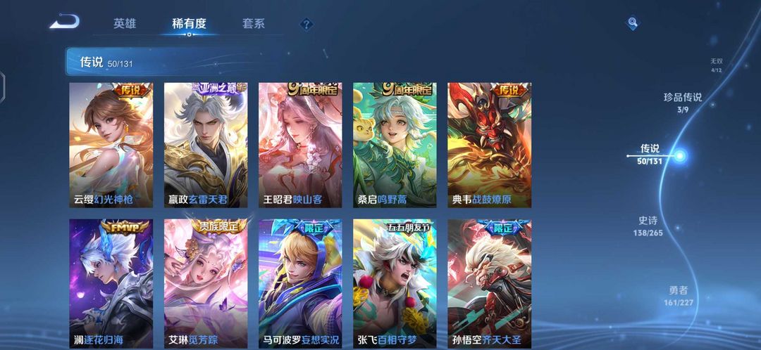 【非云直上】V10★皮肤榜一★539皮满典藏★鲁班时之奇旅会员★虞姬黛羽霜翎星元★吕布白金战神★全能大师★多金标★个性按键