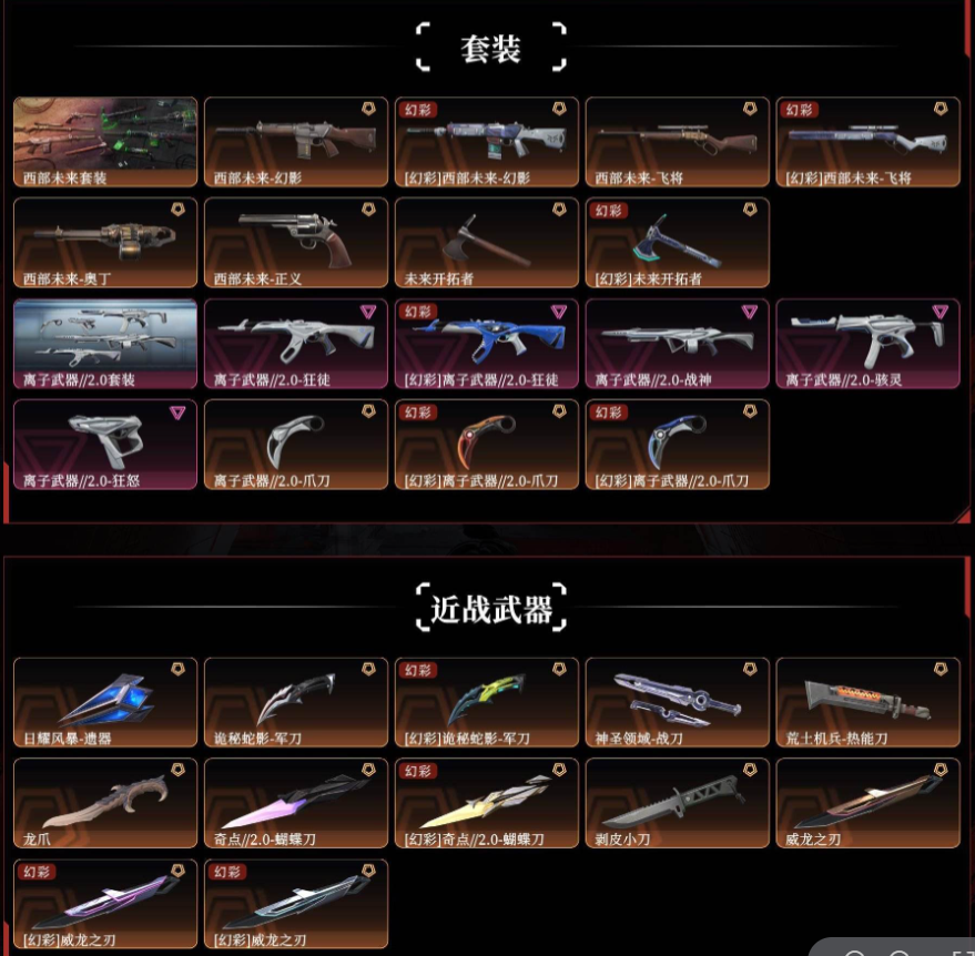 首页 > 租号大厅 > 无畏契约-wegame > wegame/wegame > 可排✨西部离子套蝴蝶刀剥皮刀VCT25✨混沌塑水紫金盖亚虚空纪元洪荒归零者神兵侦察✨奇点离子