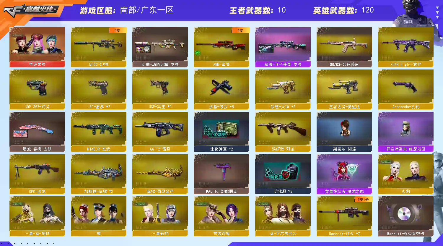 首页 > 租号大厅 > 穿越火线 > 电信区/广东一区 > 【南.部】极品♥幻神三件套♥裁决三件套♥qbz天罚带卡♥玄豹白虎双usp冥王满质量手枪♥极品爆破