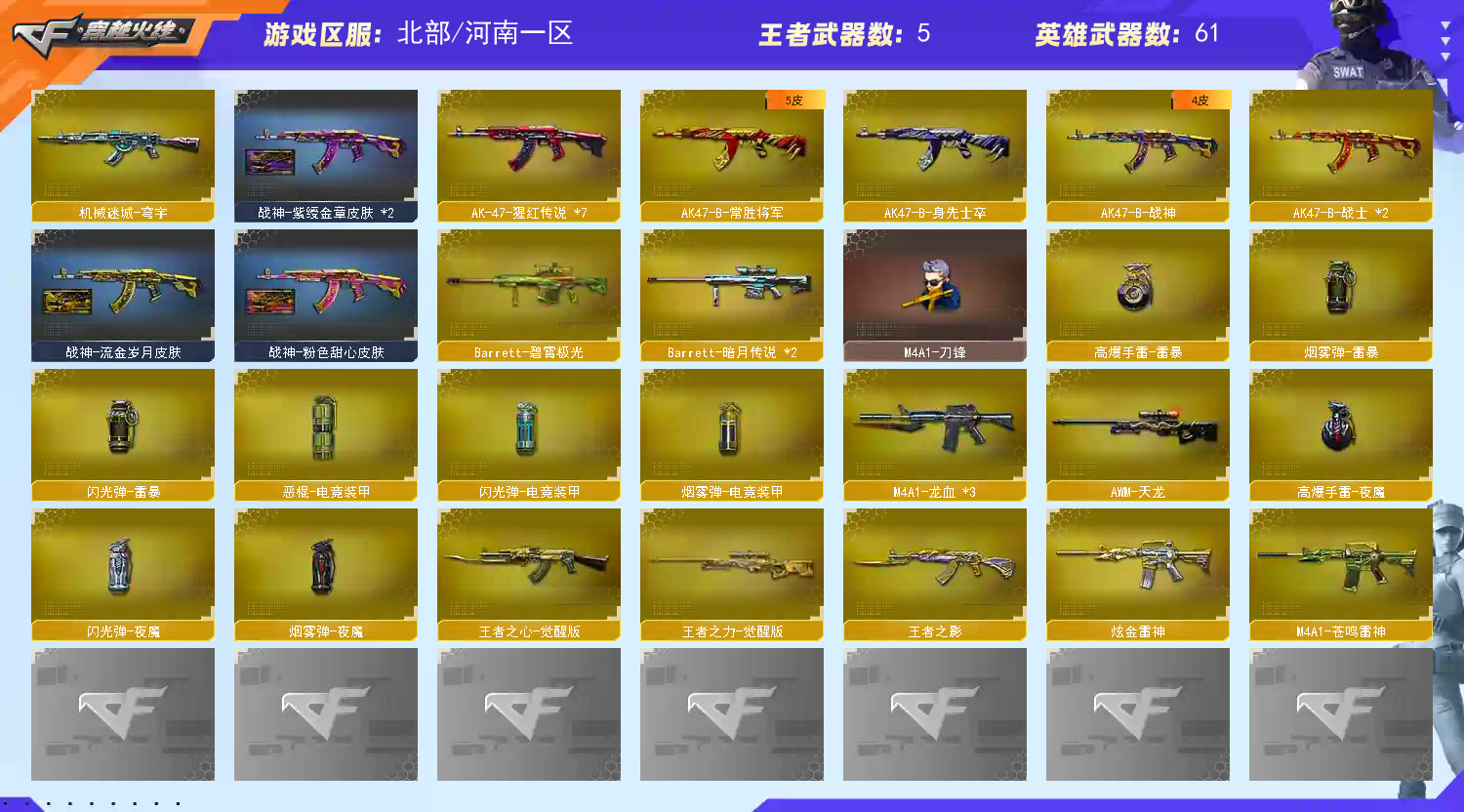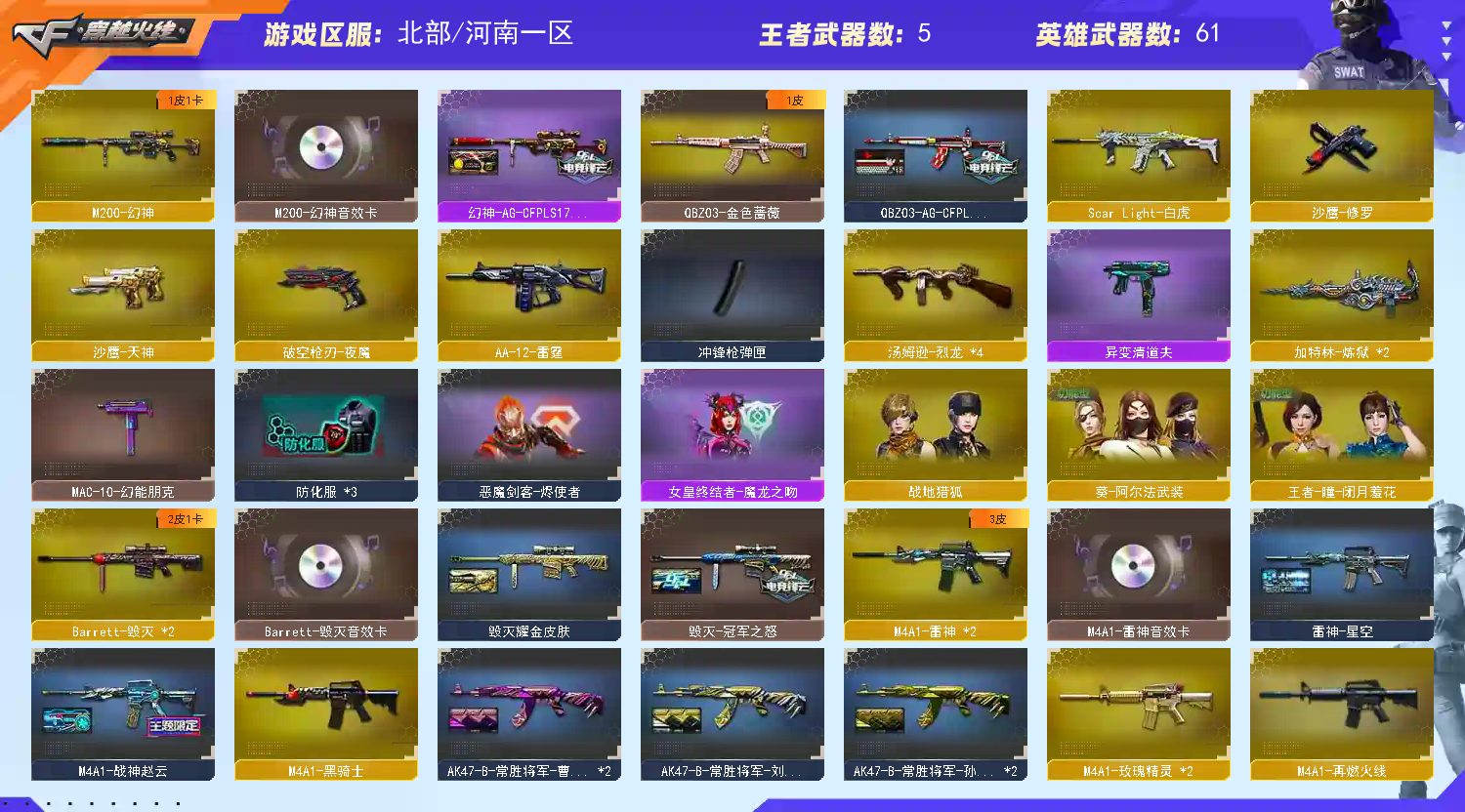 北部天花板;QBZ03-金色蔷薇,M200-幻神,Scar Light-白虎,