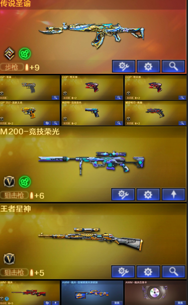 传说圣谕/M200竞技荣光/王者星神/FAMAS天戎/白虎/USP雷暴/CIO堕天神/裁决+音效卡