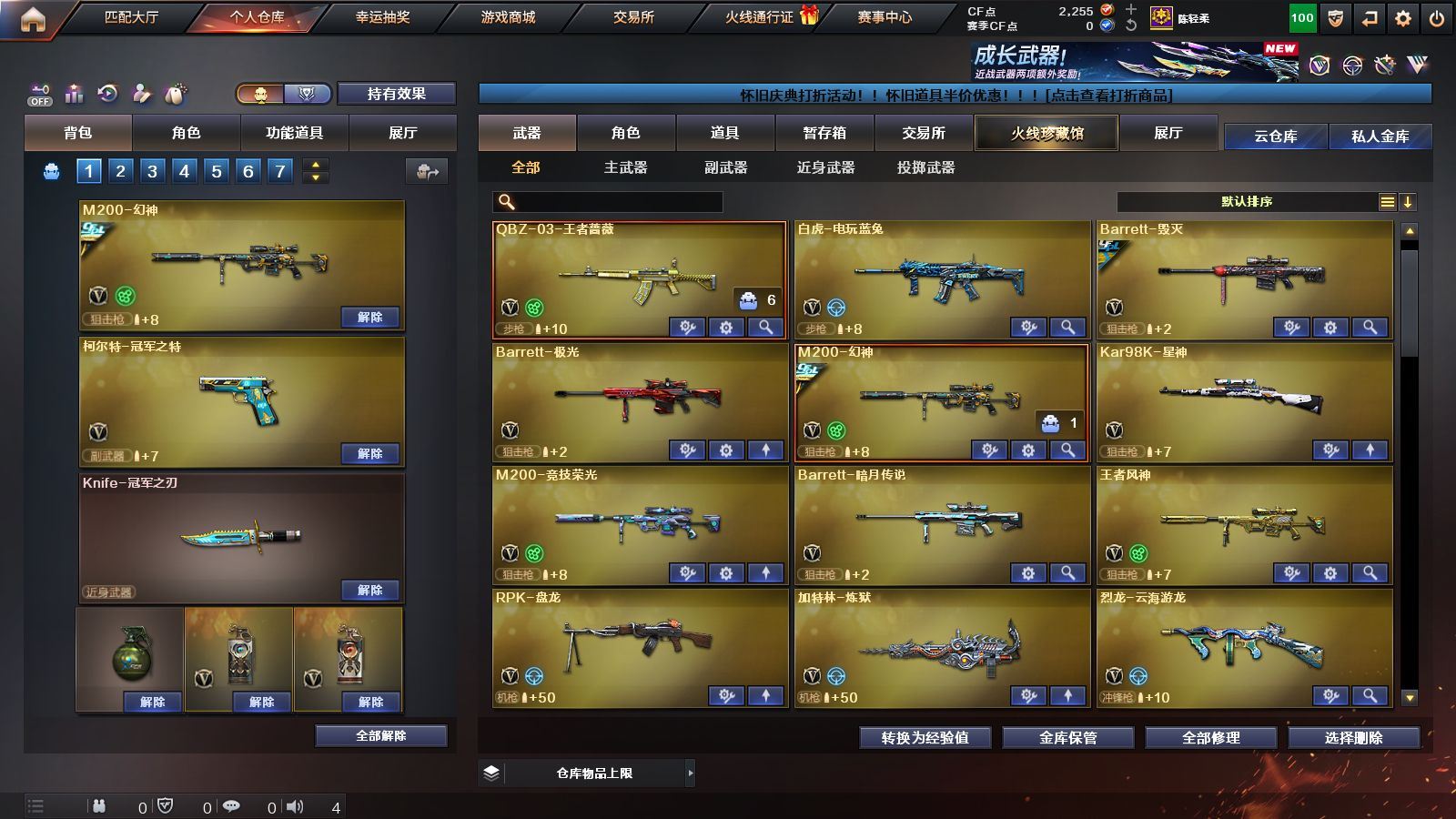 +冠军之幻》《星神》《M200竞技荣光》《王者风神 毁灭 极光》《白虎》《qbz金色蔷薇 白虎电玩蓝 兔 火麒麟 黑龙 雷神 黑骑士 黑武士》《usp雷暴 柯尔特竞技荣光 柯尔特冠军之特》《冠军之刃》《竞技荣光套装》《电竞教官云悠悠 乔伊教练 四防王者春 四防卡特琳娜 四防灵狐者职业经理 四防女主播》《火麒麟音效卡 毁灭音效卡 黑骑士音效卡 裁决音效卡 雷神音效卡 金色蔷薇音效卡》《黑骑士白马银枪 火麒麟巅峰荣耀 qbz巅峰荣耀 黑骑士冠军之势 毁灭荣耀之怒 雷神荣耀之魄 火麒麟CFSTAR》;USP-雷暴,柯尔特-冠军之特,Knife-冠军之刃,电竞教官-云悠悠,RPK-盘龙,QBZ03-金色蔷薇,M200-幻神,