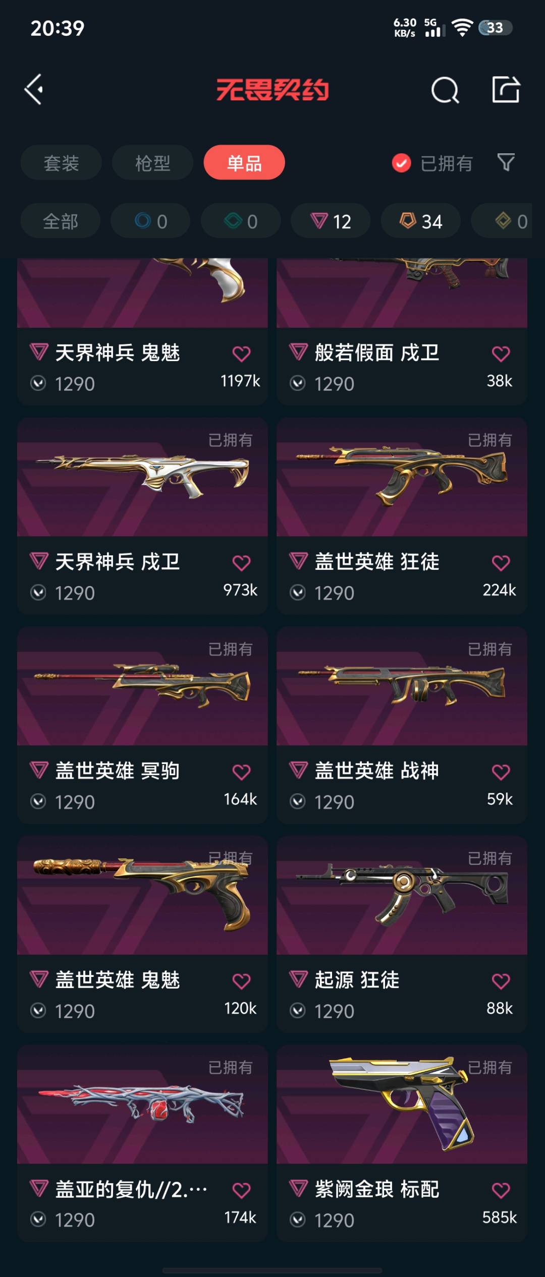 首页 > 租号大厅 > 无畏契约-wegame > wegame/wegame > 十万VP价值枪皮,超多刀皮
