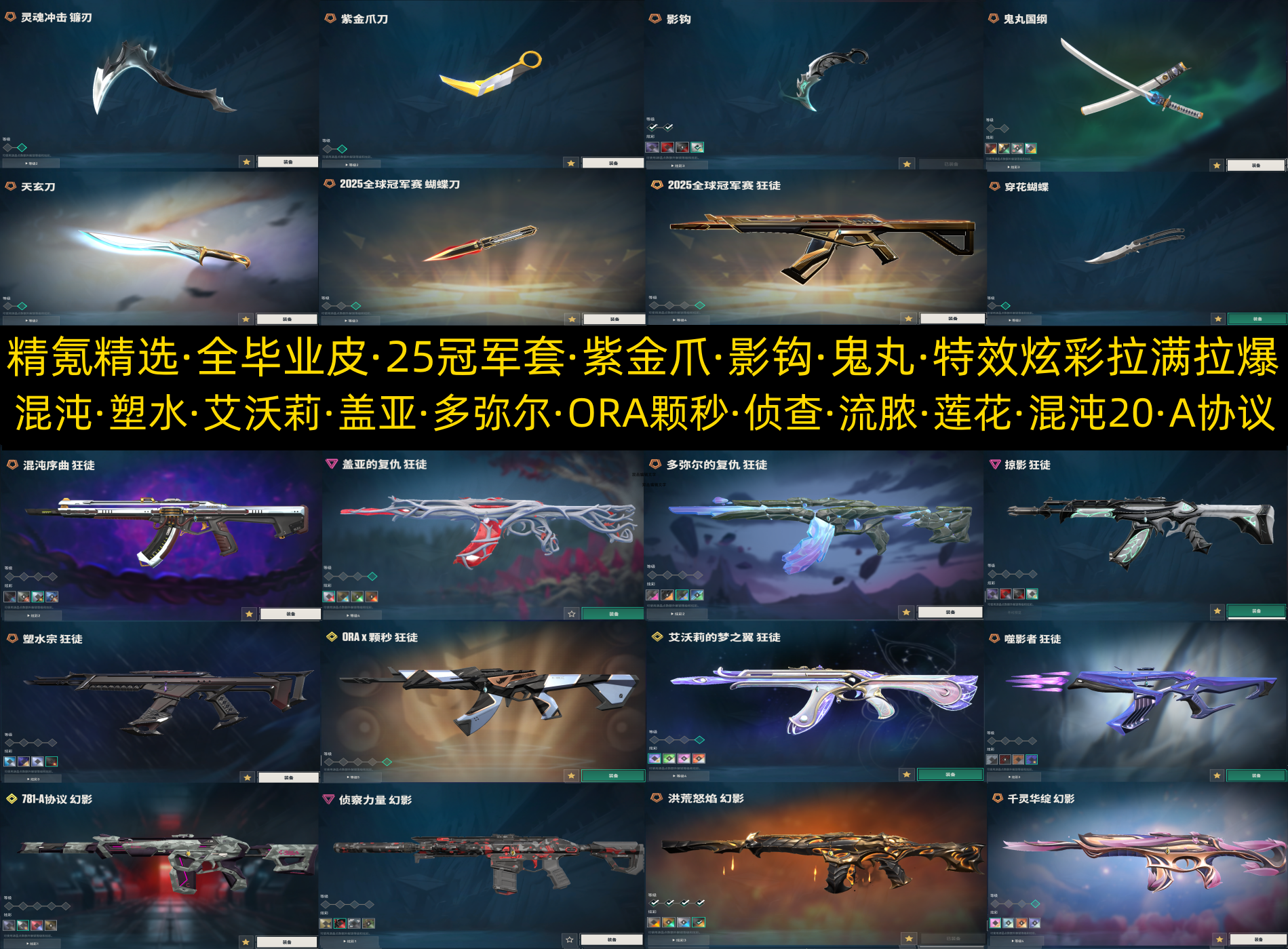 精氪毕业皮齐全特效炫彩拉满拉爆⚡ORA颗秒盖亚艾沃莉混沌塑水⚡紫金爪影钩⚡侦查莲花A协议混沌2流脓