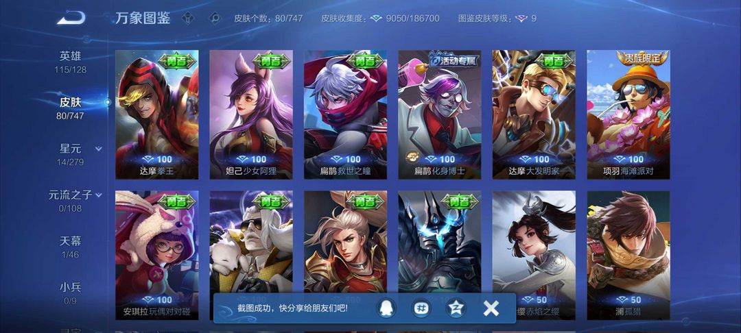 779皮肤♥皮肤共享道具多♥新皮肤已秒🎁无双荣耀v10V11v12 🎁满英雄🎃满荣耀皮肤,满铭文,安卓QQ230区。顶级神号装逼号牛逼