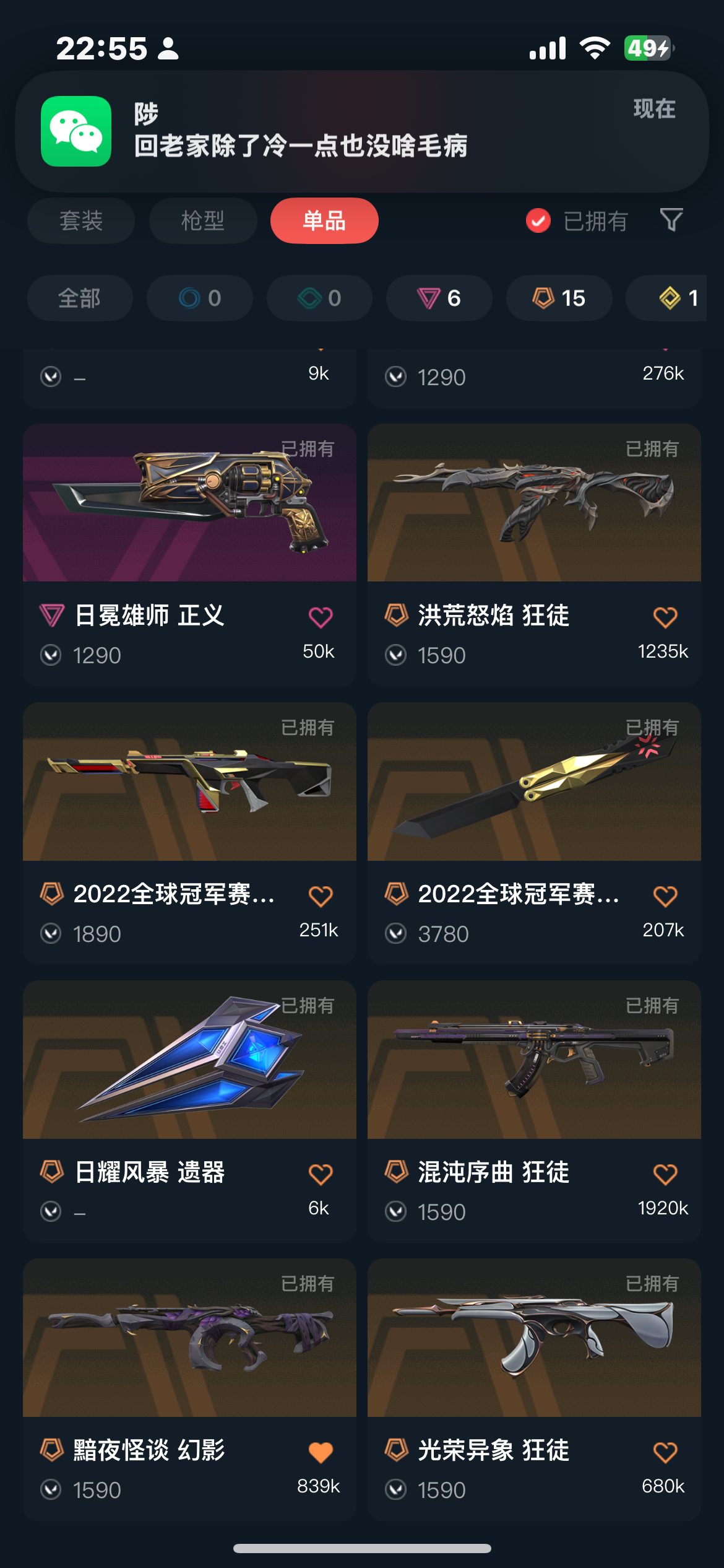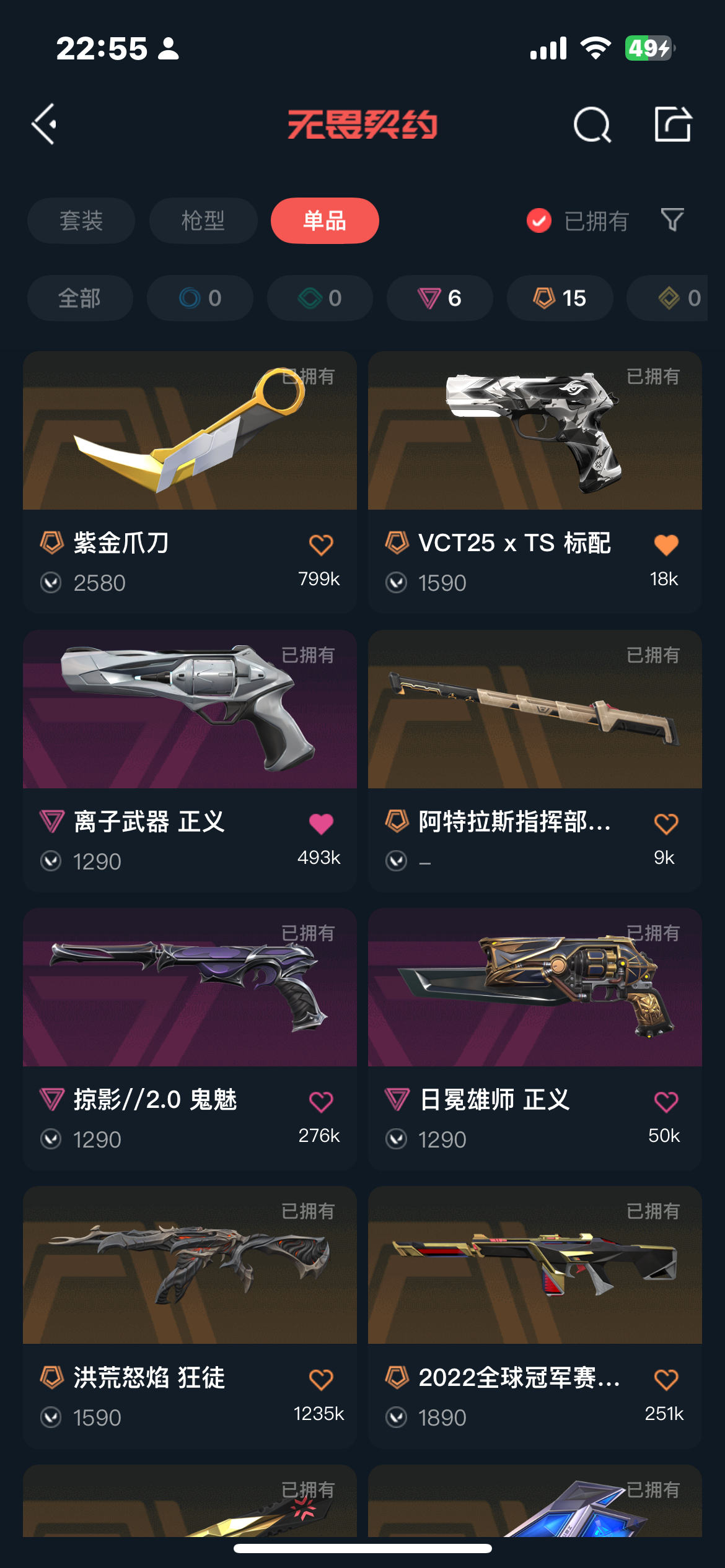 允许 英雄23 武器皮肤数量69;紫金爪刀,洪荒怒焰 狂徒,侦察力量 幻影,混沌序曲 狂徒,光荣异象 狂徒,天界神兵 鬼魅,离子武器 正义,
