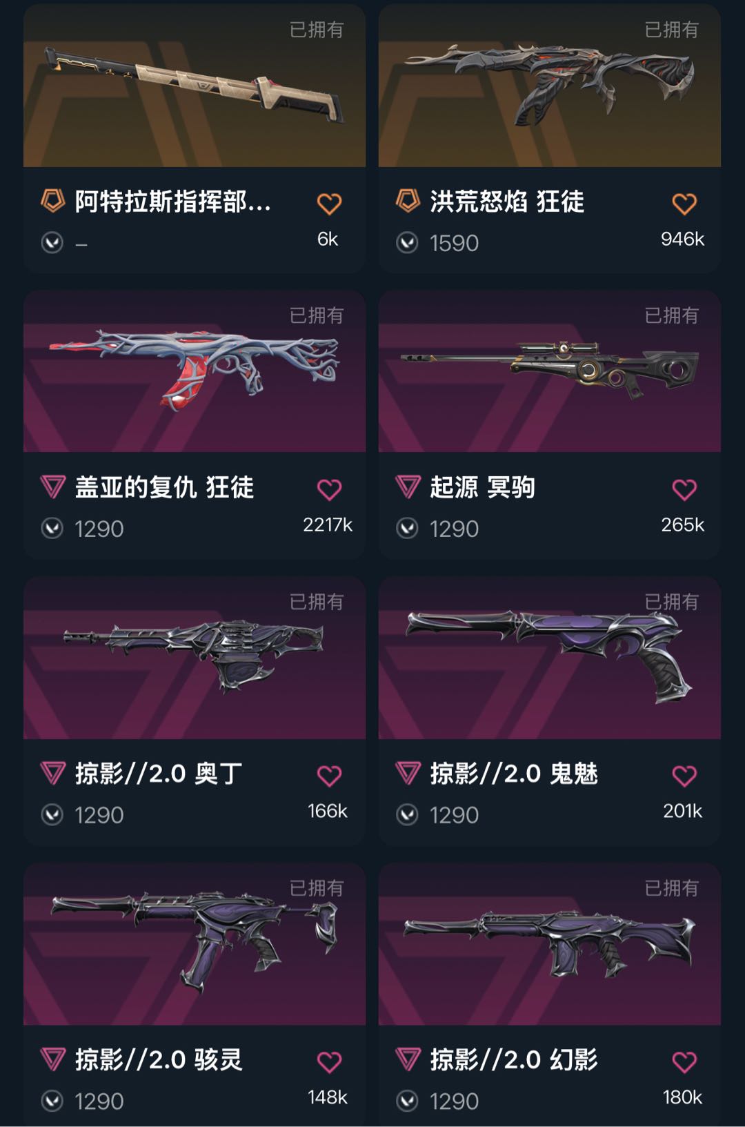 3W库/25冠军套/blg标配/混沌幻影/影勾/塑水狂徒/流脓狂徒/盖亚狂徒/起源冥驹/掠影2.0套