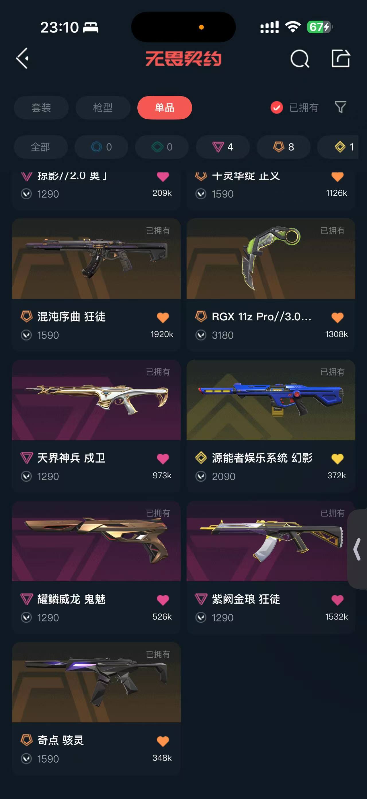 首页 > 租号大厅 > 无畏契约-wegame > wegame/wegame > 可排位*25套*混沌狂徒*紫金狂徒*莲花正义*流脓狂徒*莲花幻影*掠影奥丁*显卡爪刀