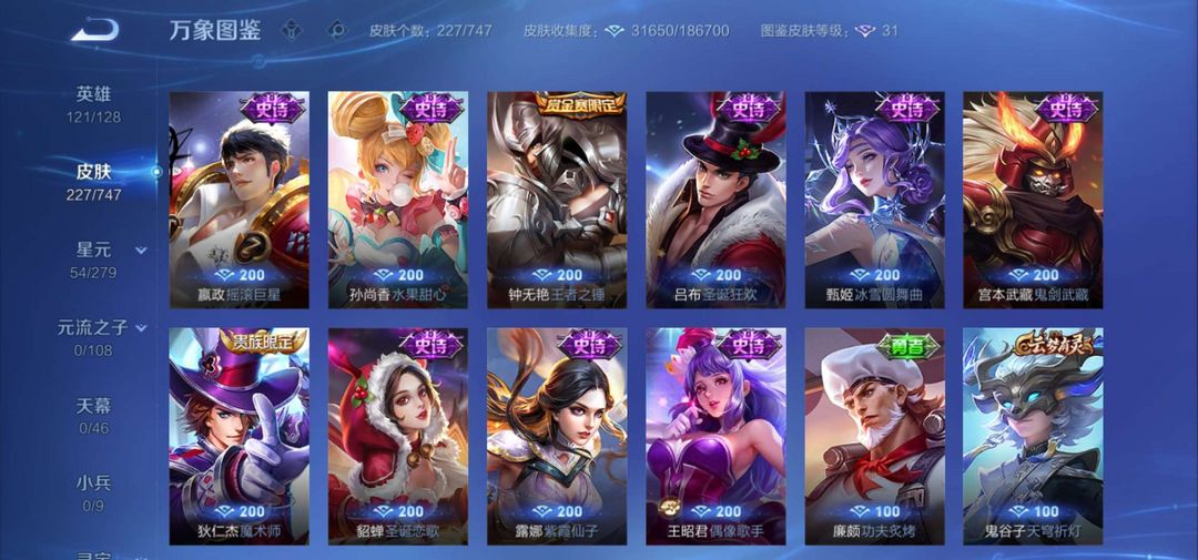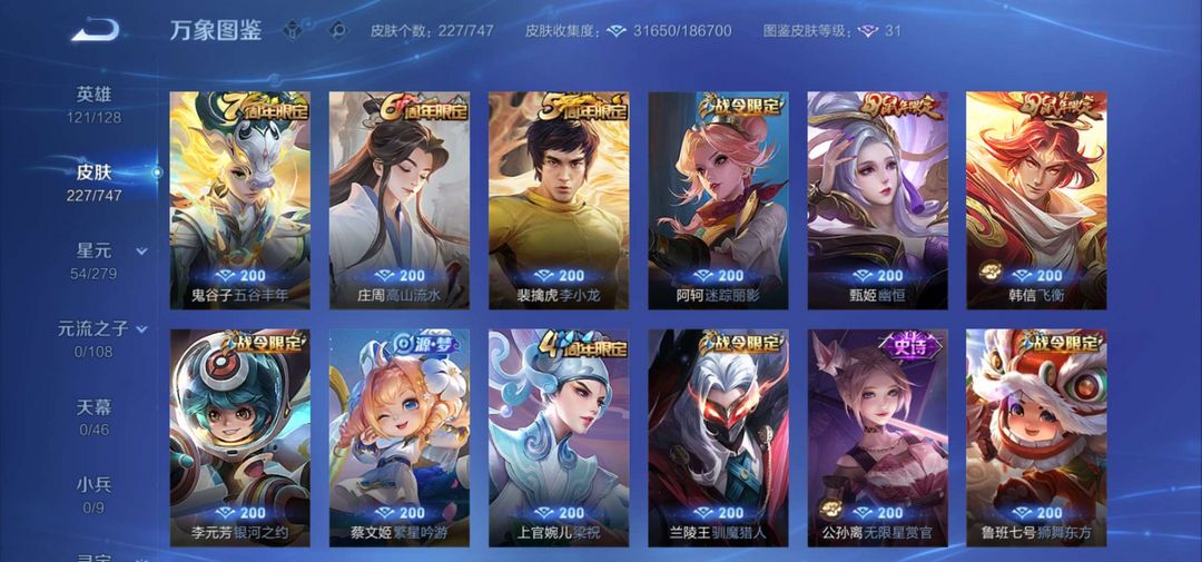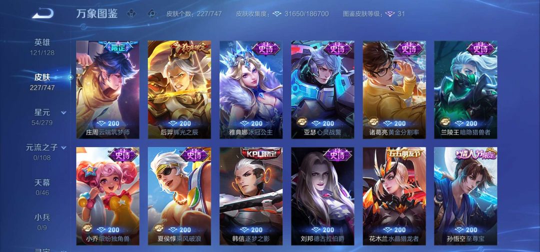 v10、12水555皮、死亡执政官、刘备星传说时之思念、小兵皮肤大耳狗甜茶、瑶无双真我赫兹、愿照·九州拓、怪盗基德、画中仙、至尊宝、凤求凰、神威、天魔缭乱