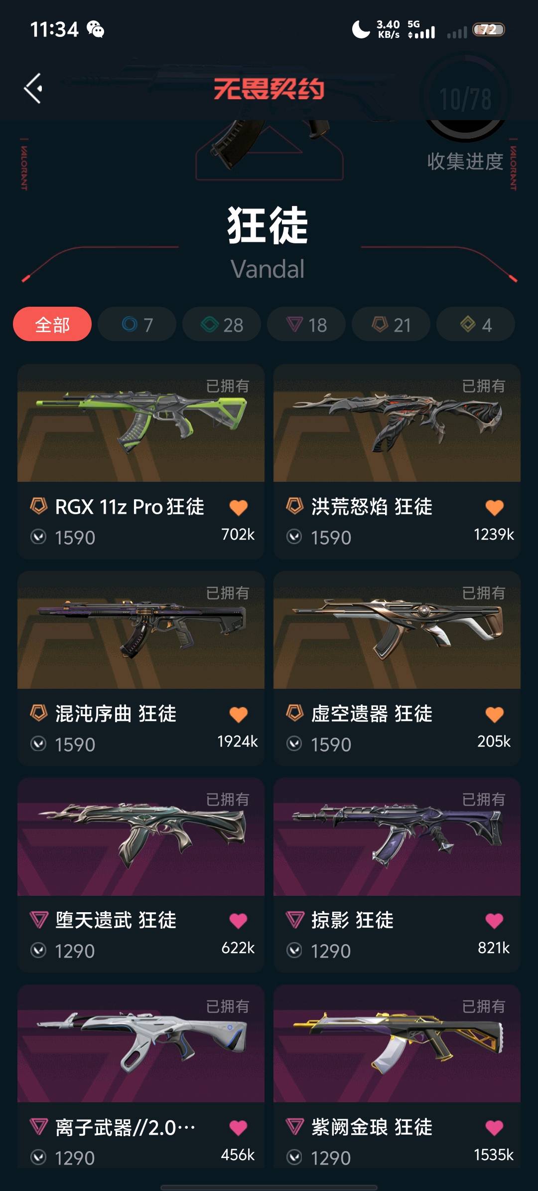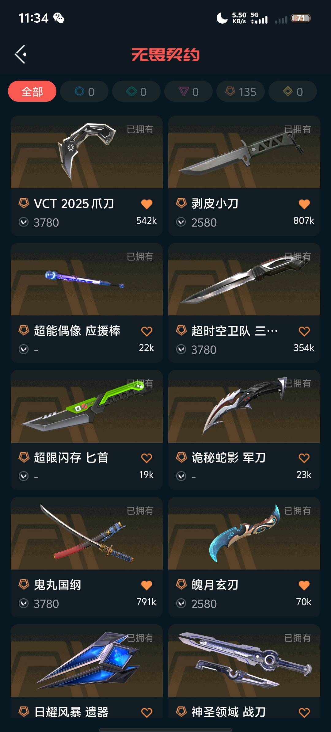 可排位;剥皮小刀,威龙之刃,VCT 2025 爪刀,虚空遗器 狂徒,洪荒怒焰 狂徒,掠影 狂徒,侦察力量 幻影,